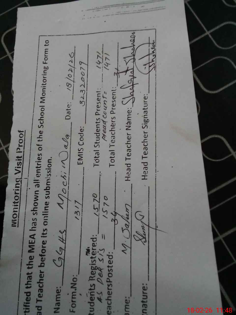 | EMIS Code: 32320079 | Name of School: GGHS MOCHI WALA | |||