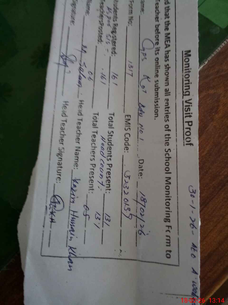 | EMIS Code: 32320139 | Name of School: GPS KOT ADU NO. 1 | |||