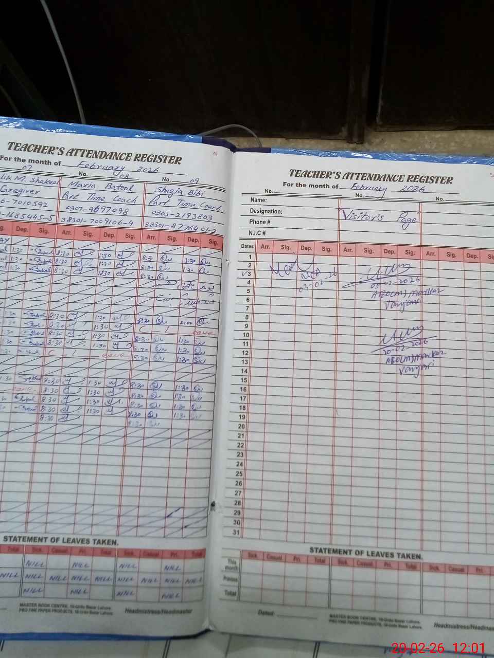 | Attendance Register | Head Teacher | MEA with School | Visit Proof |