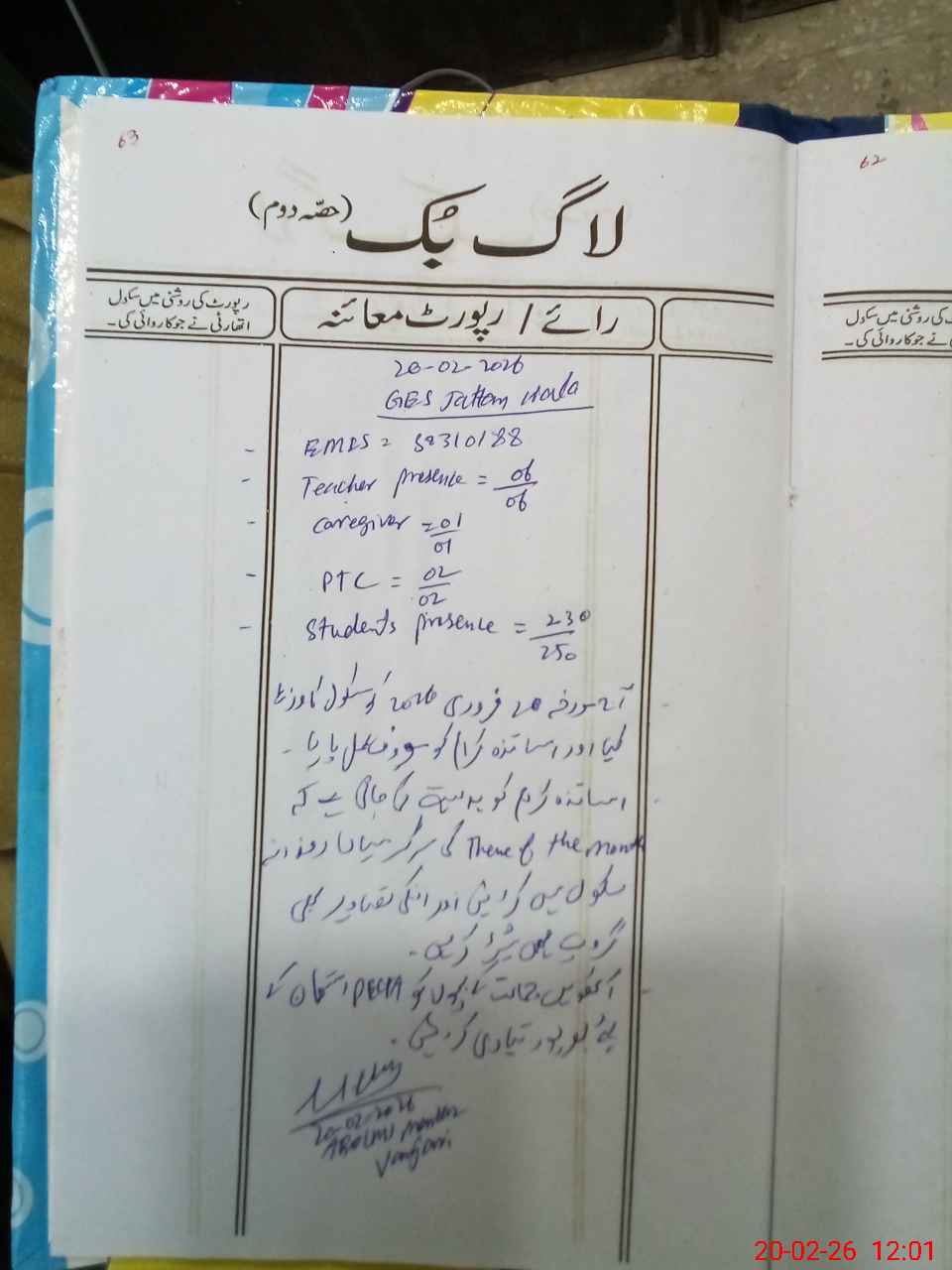 | Certified that this School was Inspected by the Undersigned MEA/DMO Today and the Information Stated Above is as Per Record. | |||||
