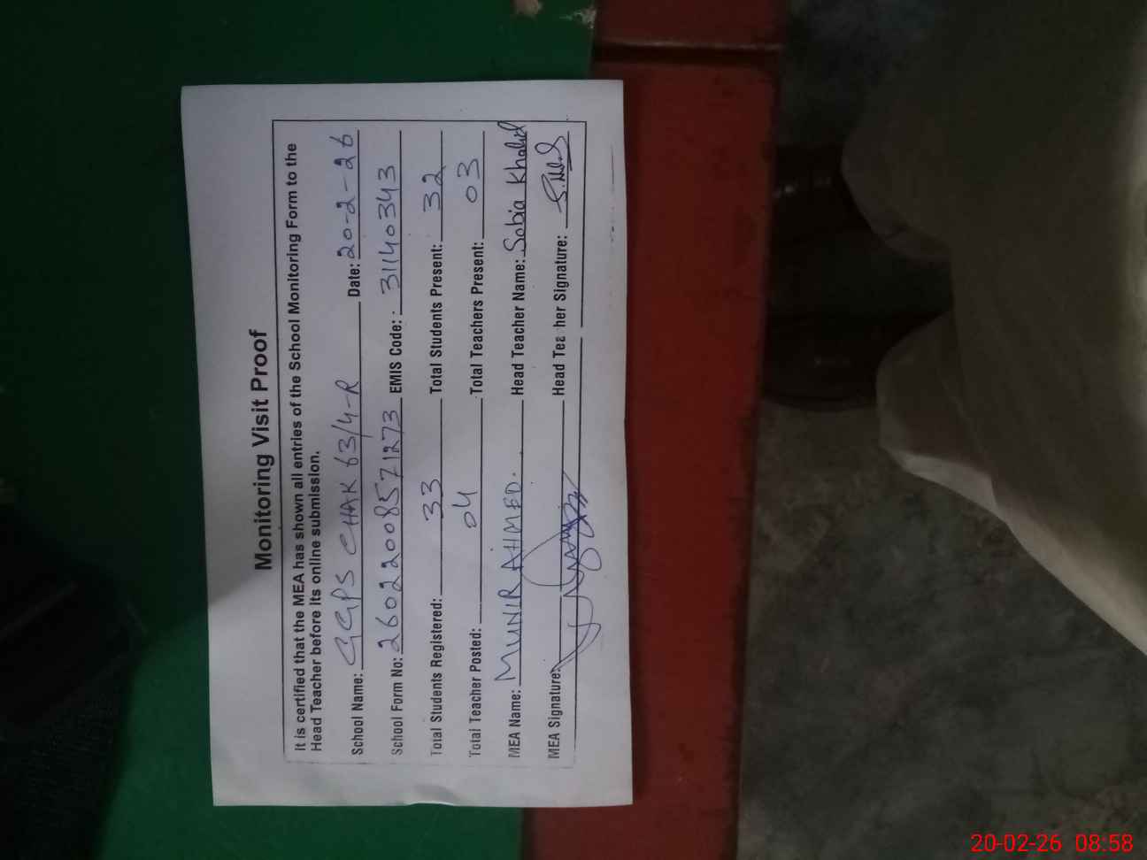 | EMIS Code: 31140343 | Name of School: GGPS CHAK 63/4-R | |||