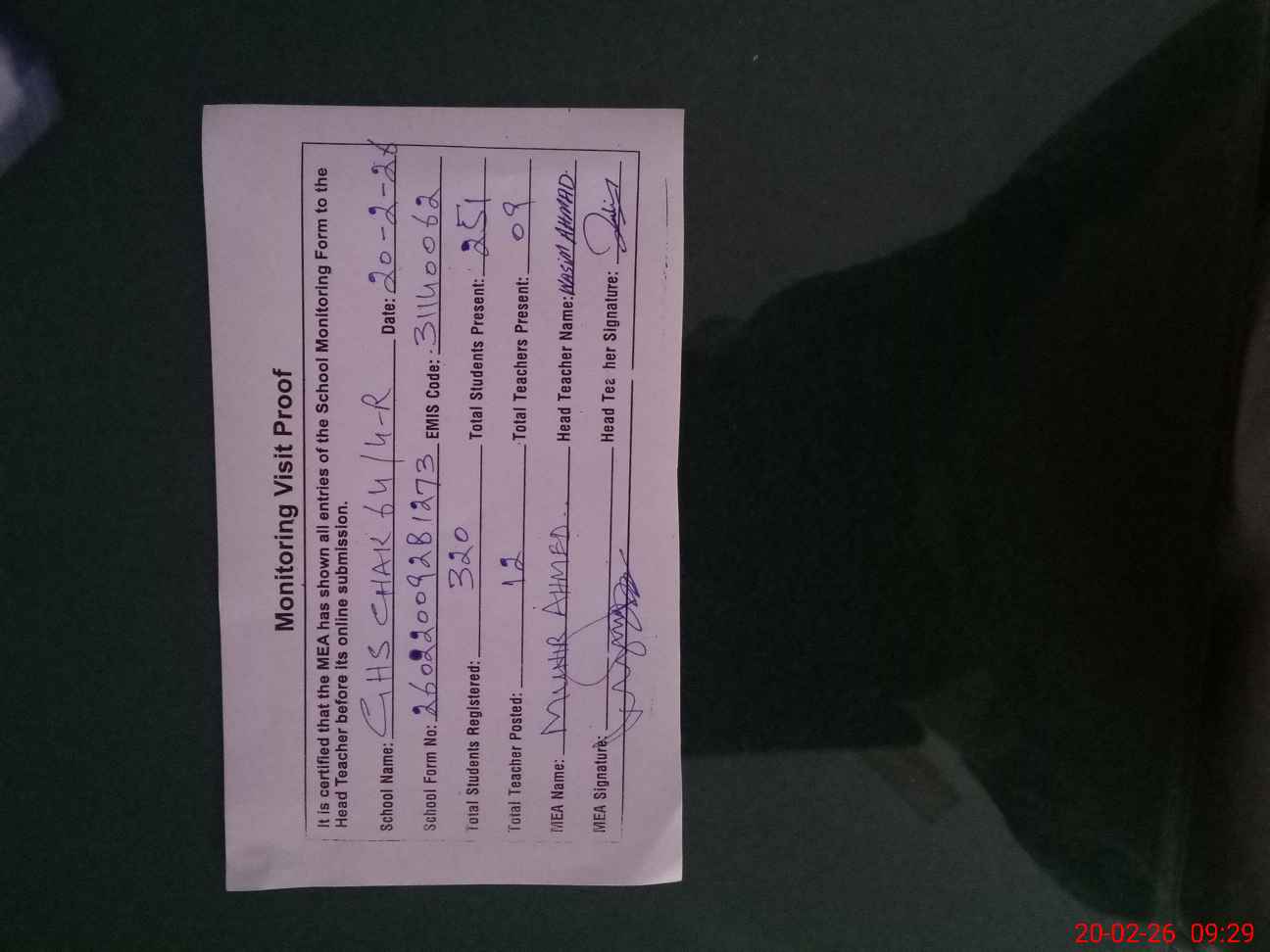 | EMIS Code: 31140062 | Name of School: GHS CHAK 64/4-R | |||