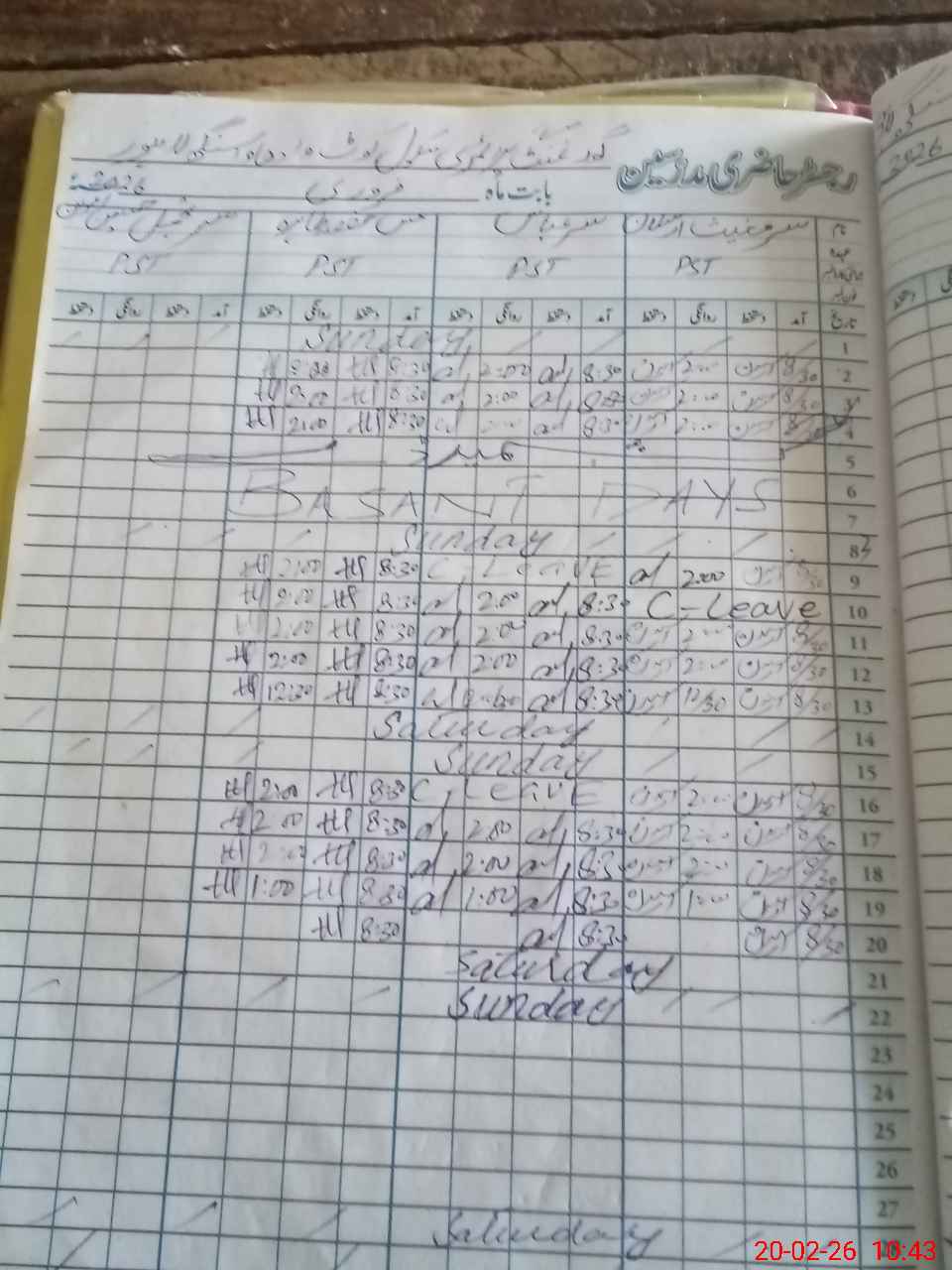 | Leave | Duty | Absent | Maternity | Medical | Ex- Pak |