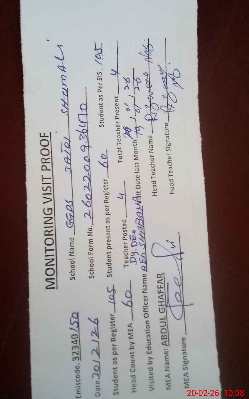 | EMIS Code: 32340150 | Name of School: GGPS JATOI SHUMALI | |||