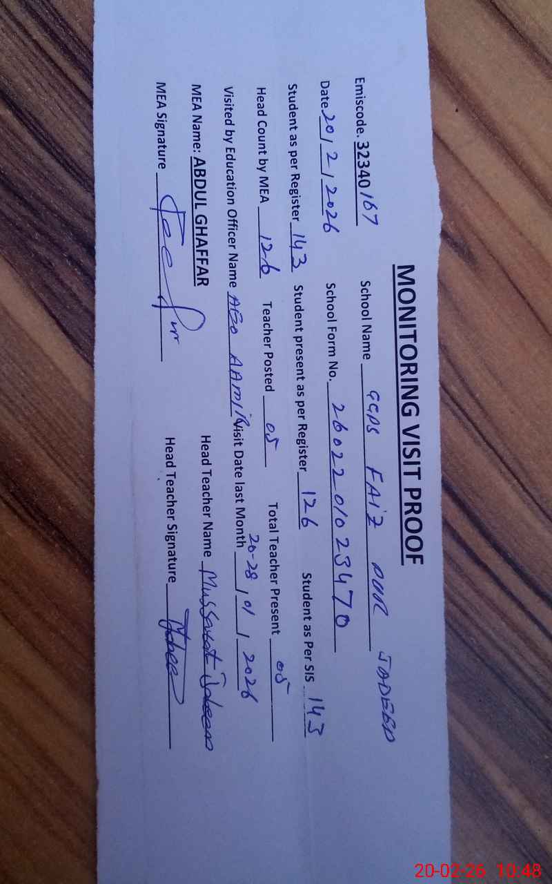| EMIS Code: 32340167 | Name of School: GGPS FAIZ PUR JADEED | |||