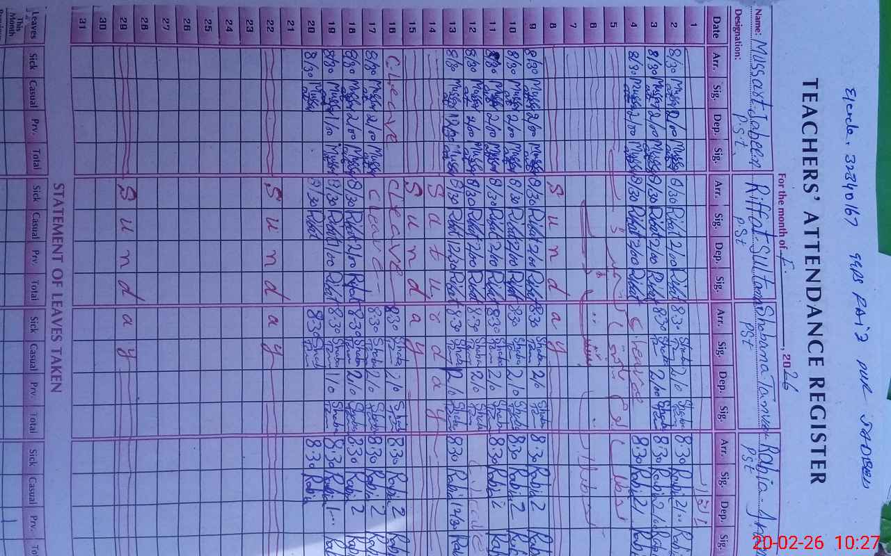 | Name: Mu**** Ja**** Designation: (School Headmaster's/Headmistress's) PST Phone/Cell Number: 03**** |
