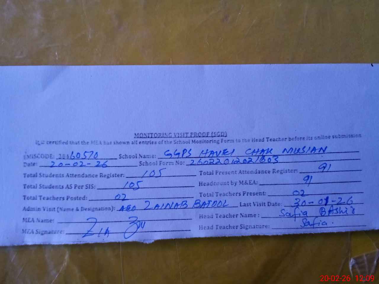 | EMIS Code: 38460570 | Name of School: GGPS HAVELI CHAK MUSIAN | |||