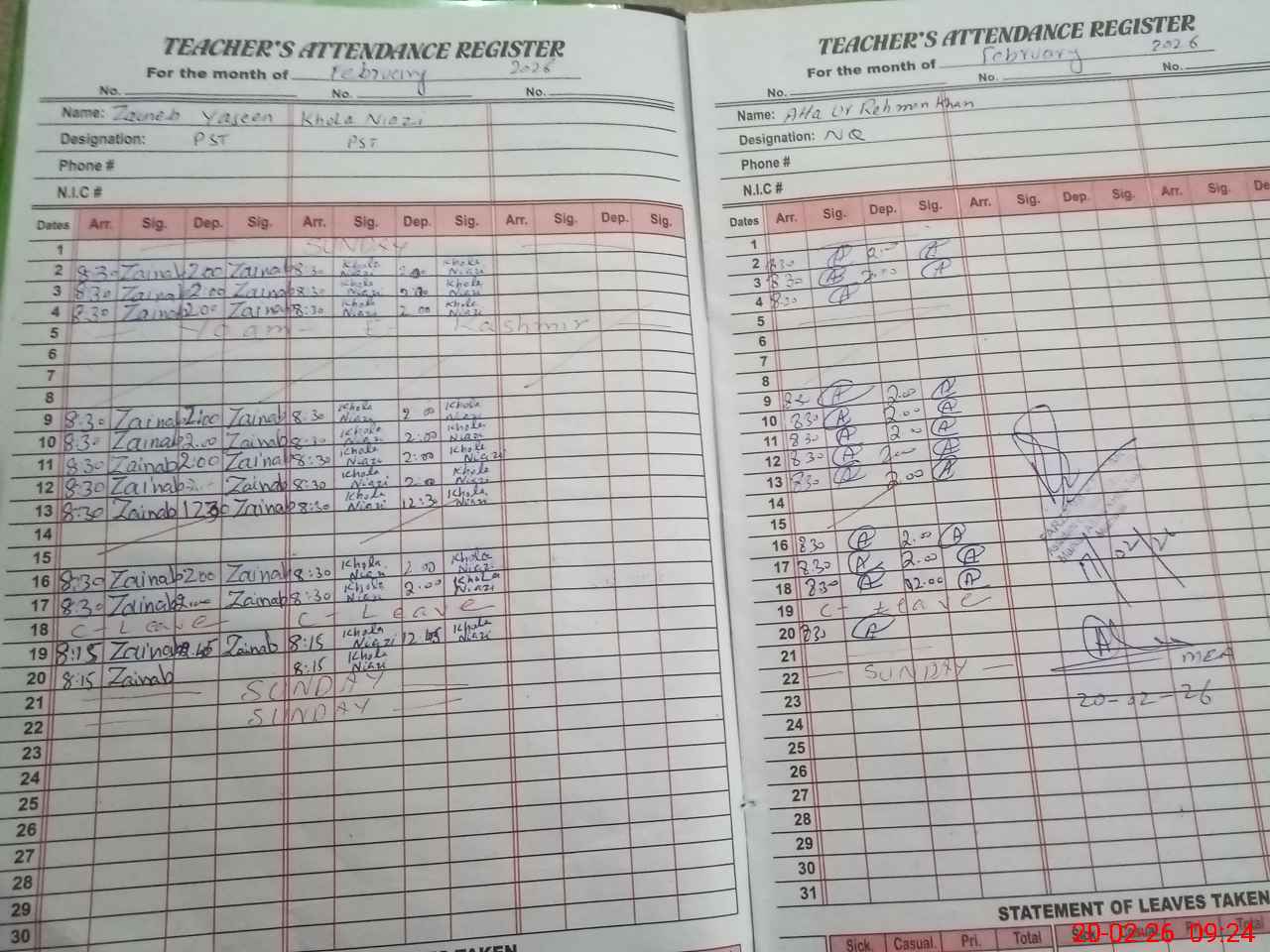 | Total no. of Classrooms: 9 No. of Classrooms Used for Teaching: 9 No. of Classrooms Storing Old Furniture, FTBs, etc: 0Comments if Any: EST kaneez Fatima retired wef 10 September 2025 but still showing in Mea tab |