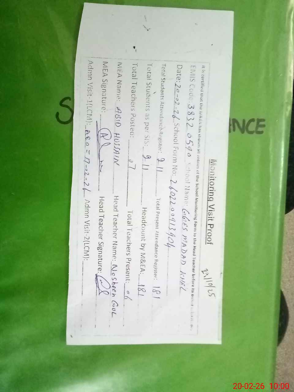 | EMIS Code: 38320590 | Name of School: GGES MADAD KHEL | |||