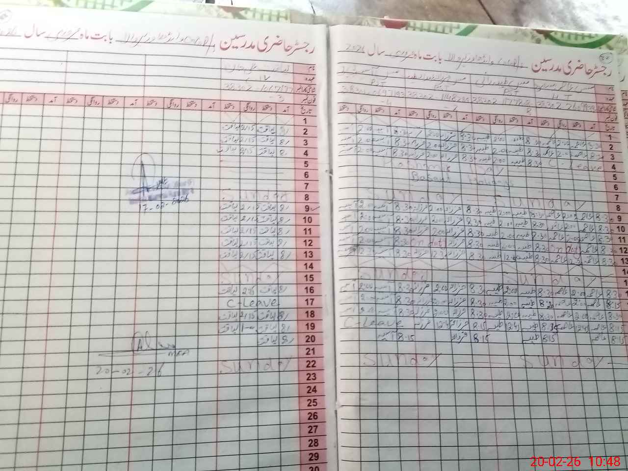 | CNIC | Full Name | Designation | R/C | Absence During Last Calender Month |