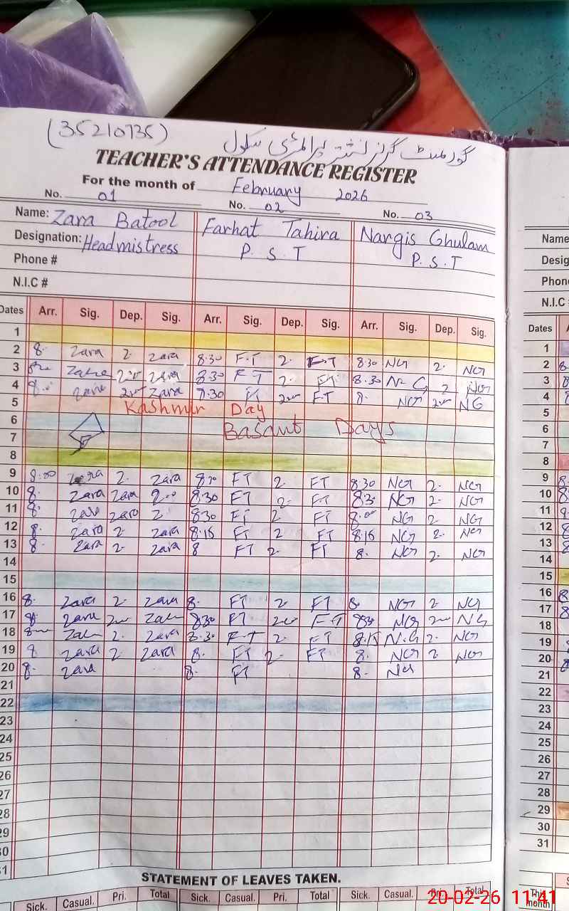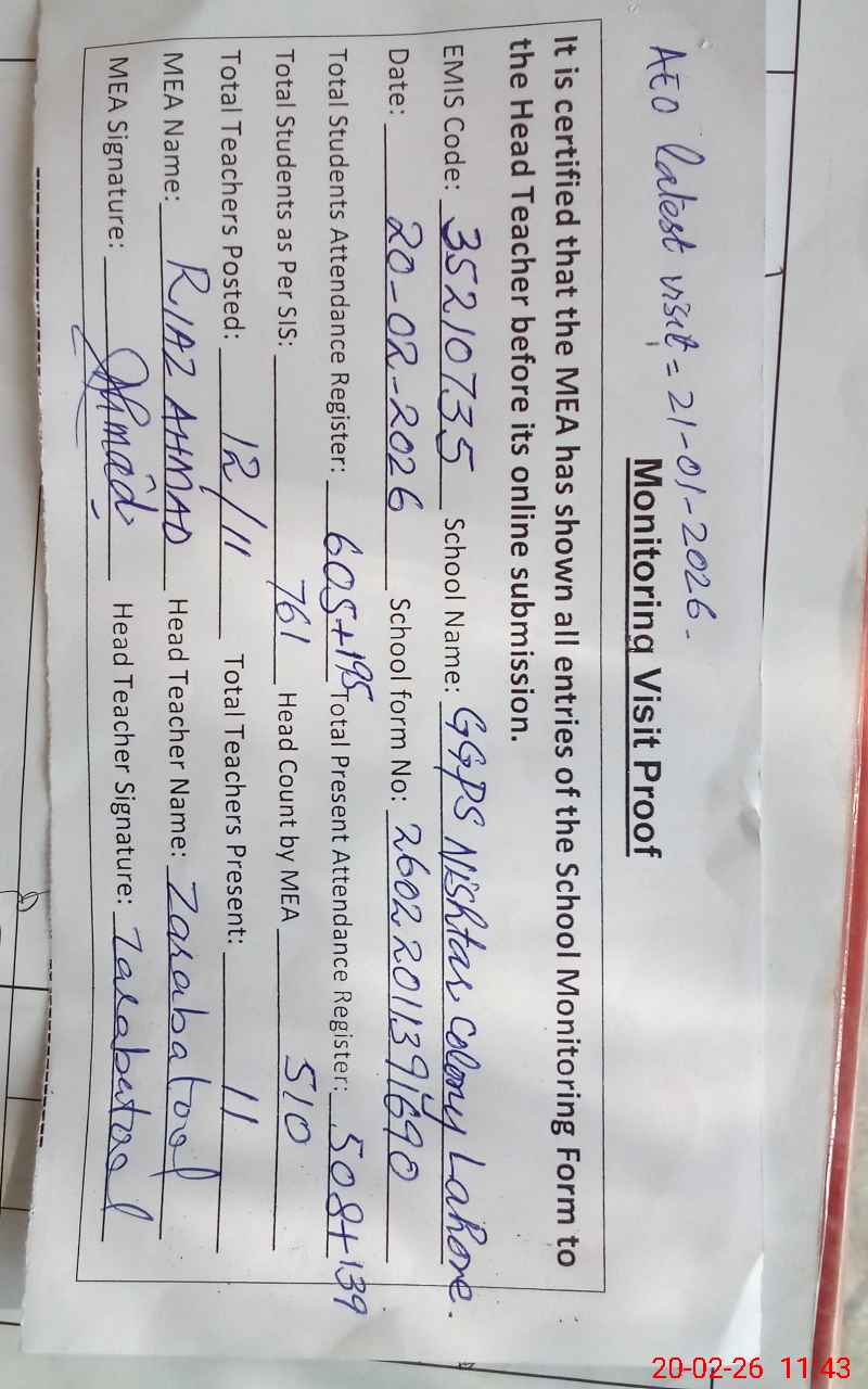| EMIS Code: 35210735 | Name of School: GGPS NISHTAR COLONY | |||