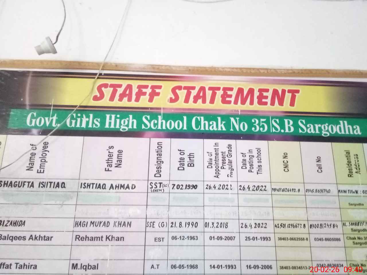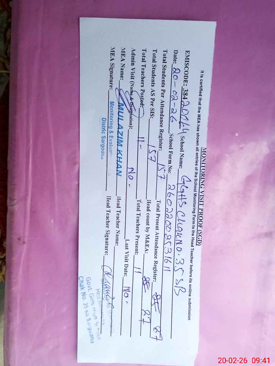 | EMIS Code: 38420064 | Name of School: GGHS CHAK NO.35 SB | |||