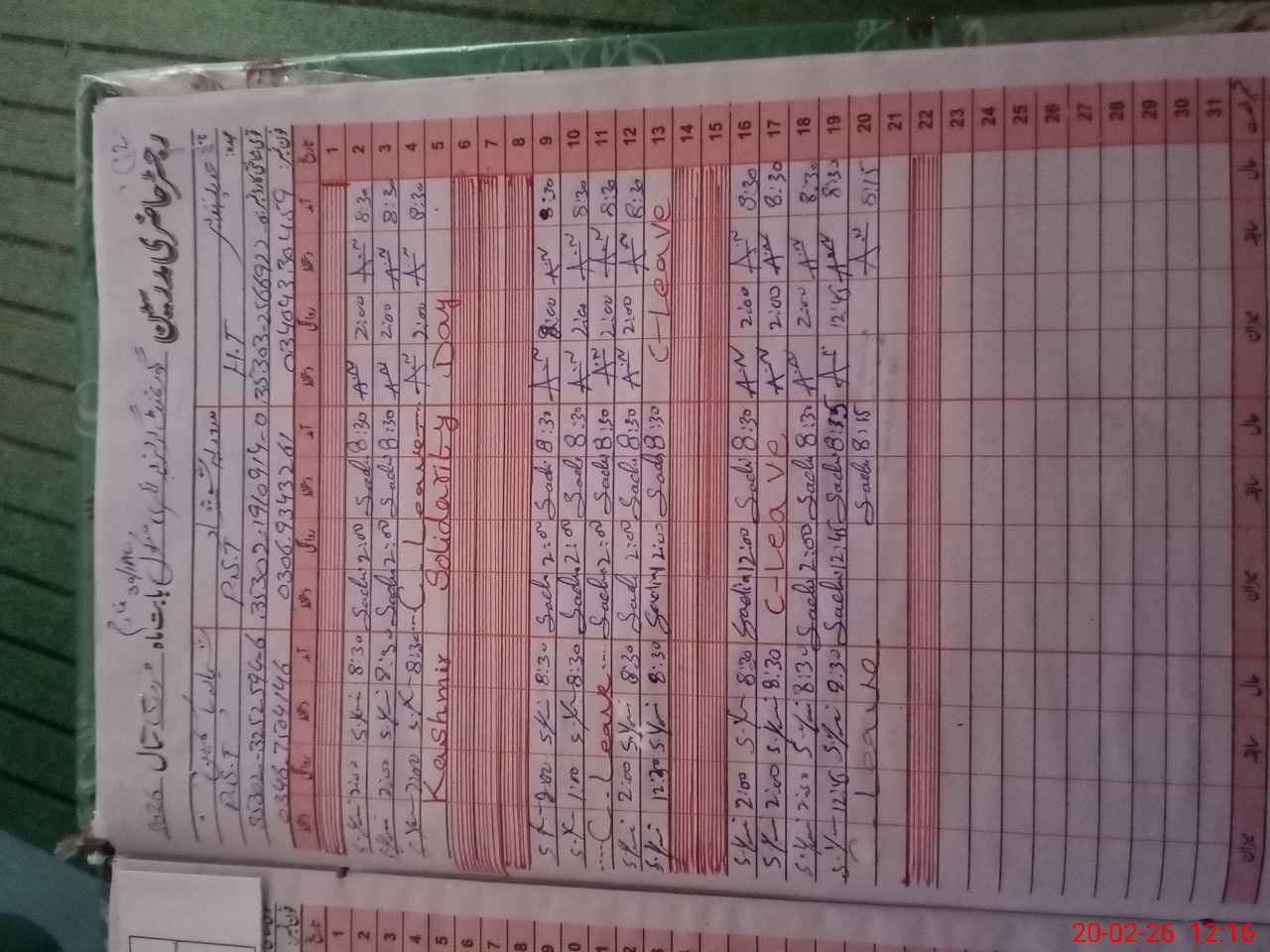 | CNIC | Full Name | Designation | R/C | Absence During Last Calender Month |