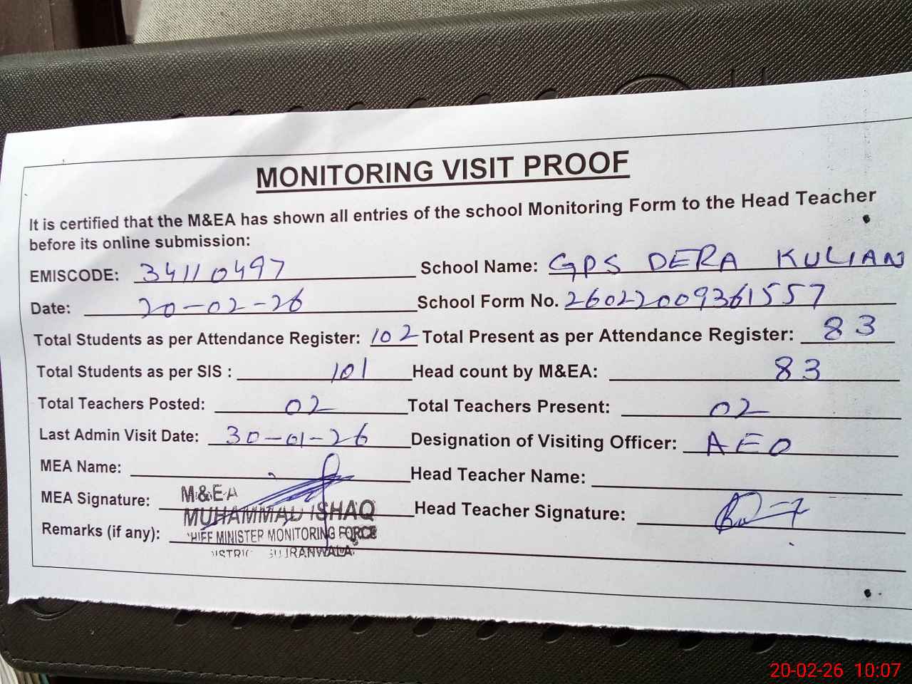 | EMIS Code: 34110497 | Name of School: GPS DERA KULIAN | |||