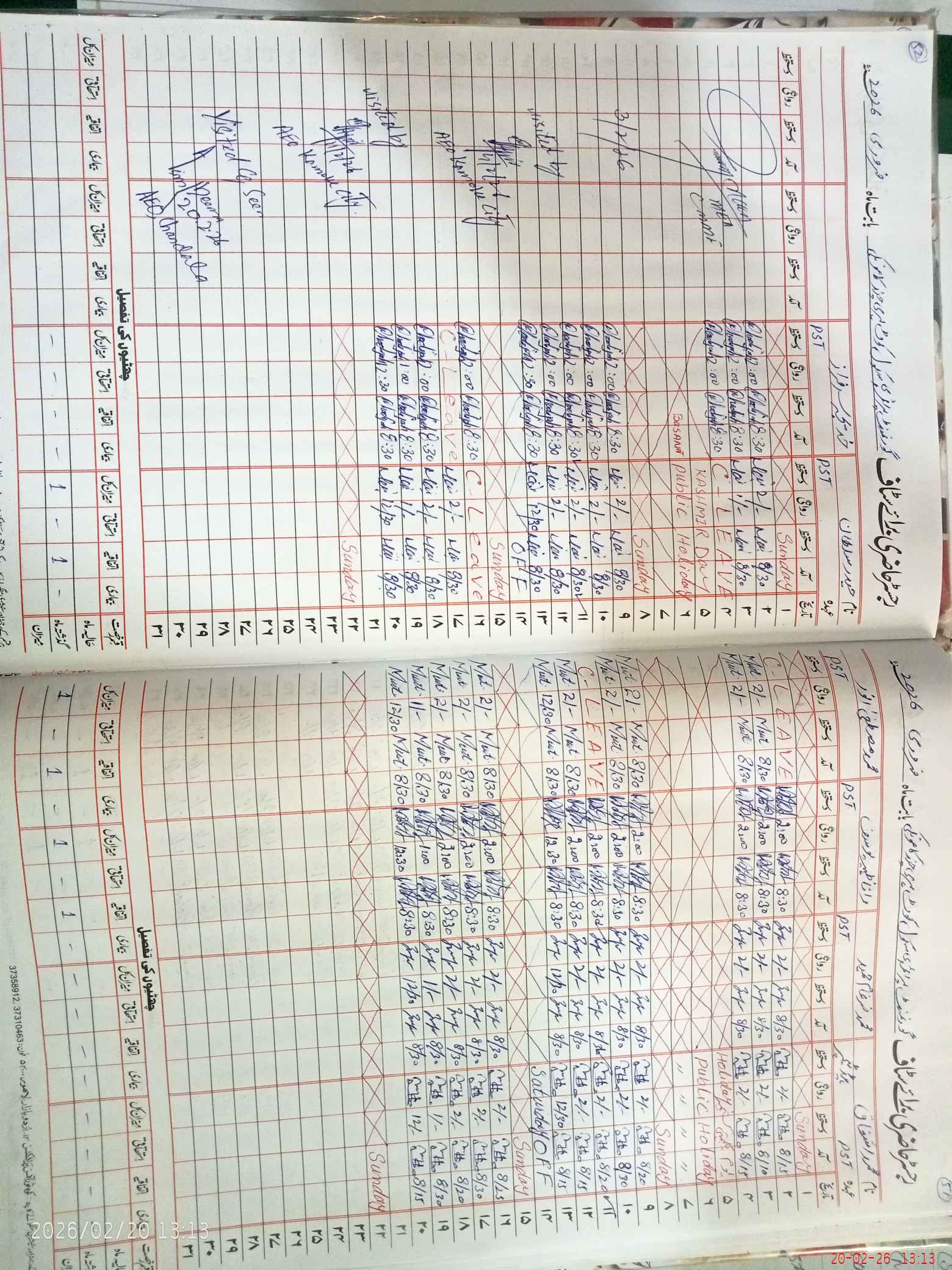 | CNIC | Full Name | Designation | R/C | Absence During Last Calender Month |
