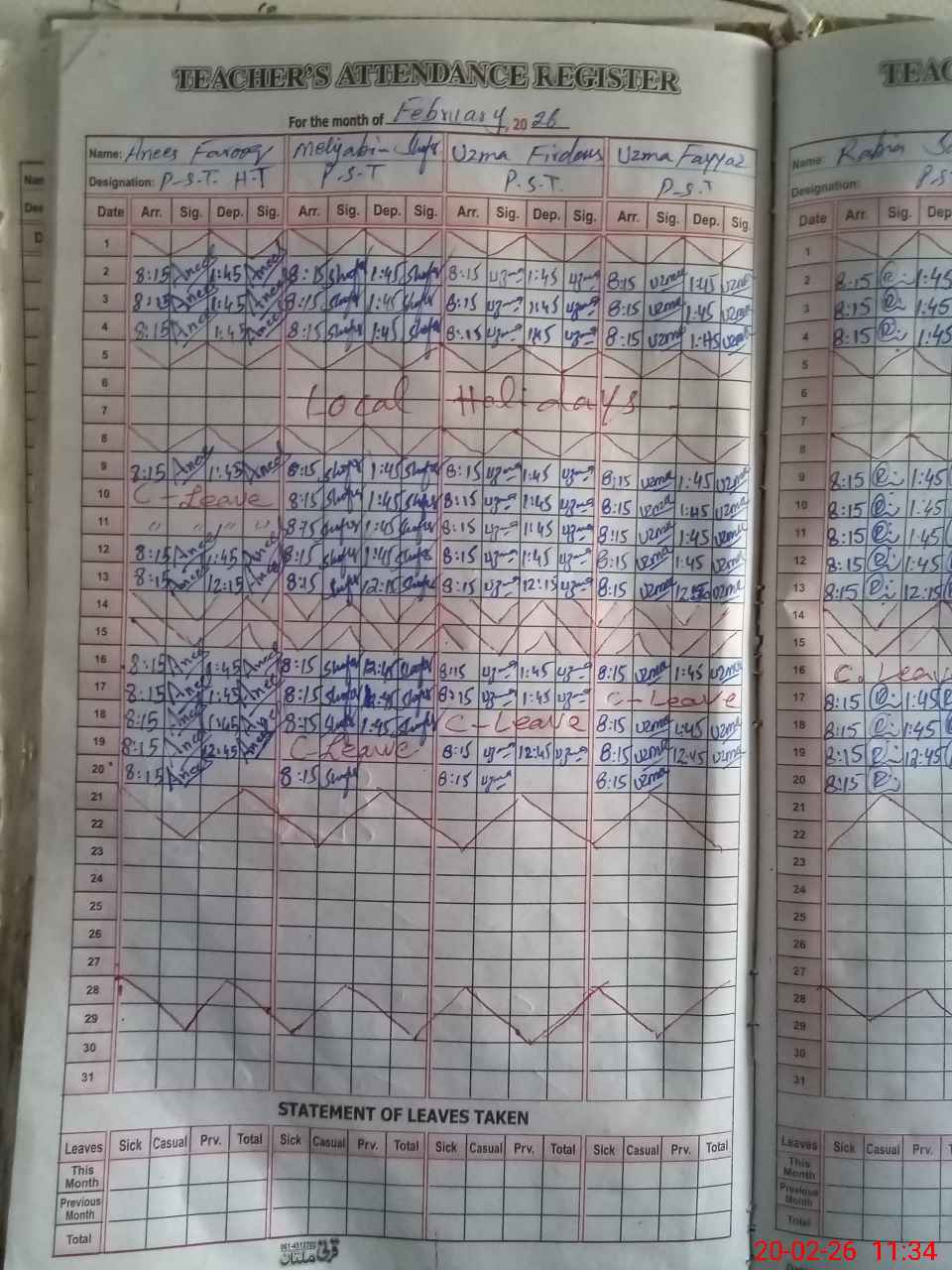 | Leave | Duty | Absent | Maternity | Medical | Ex- Pak |