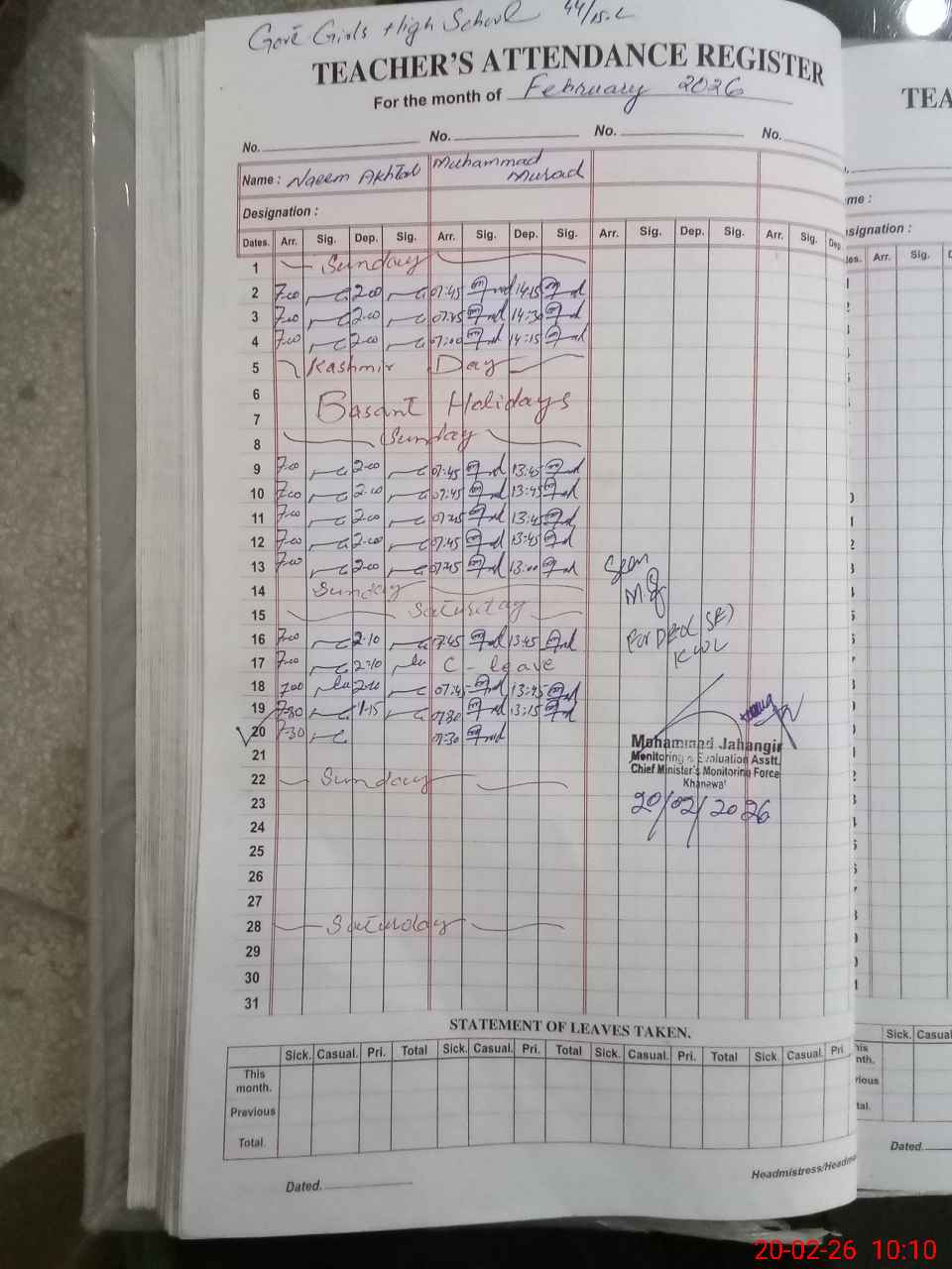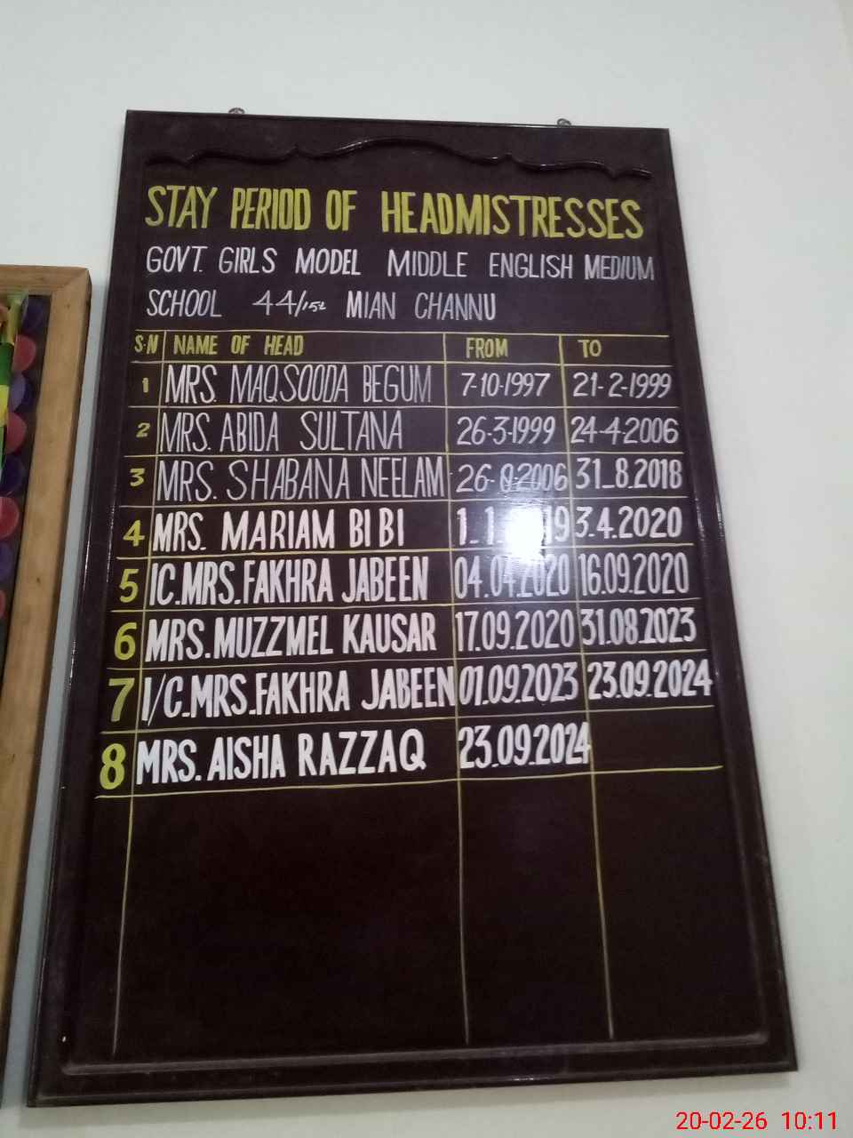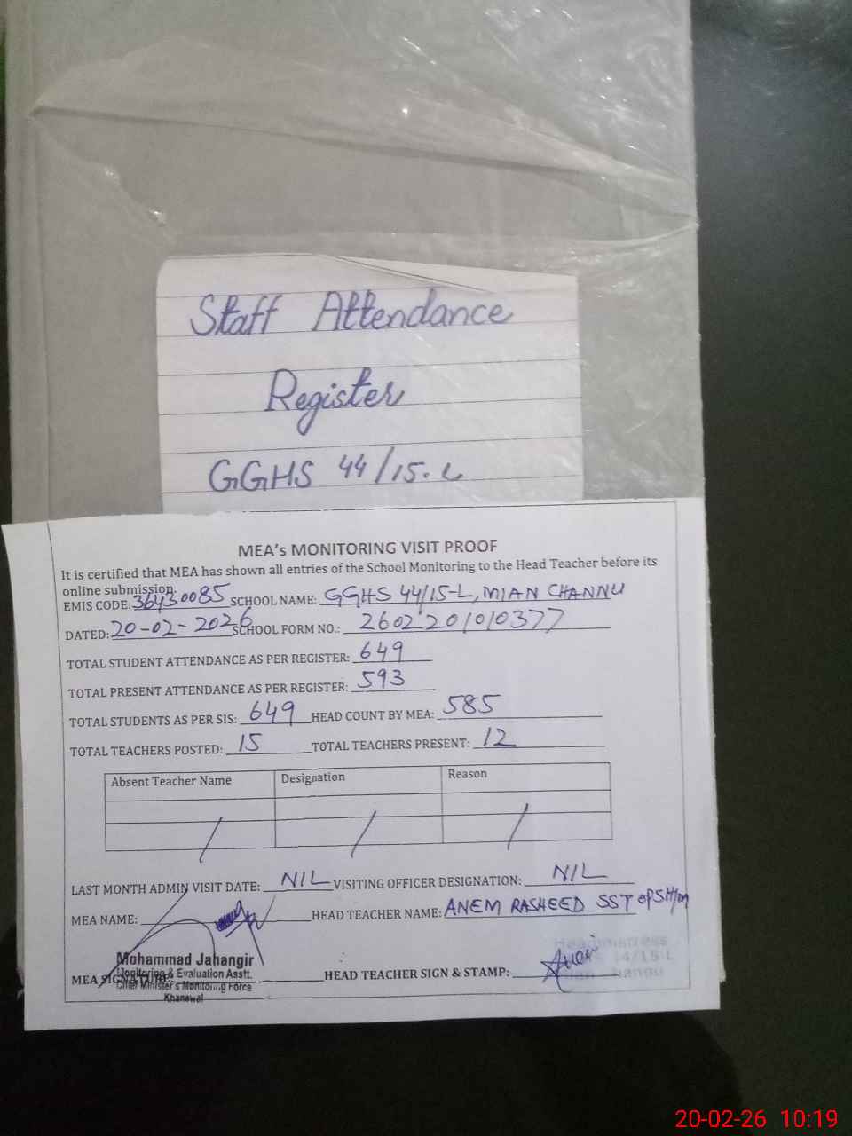 | EMIS Code: 36430085 | Name of School: GGHS 44/15-L, MIAN CHANNU | |||