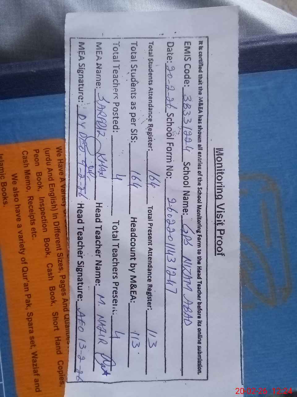 | EMIS Code: 38331224 | Name of School: GPS NIZAM ABAD PO KUNDIAN | |||