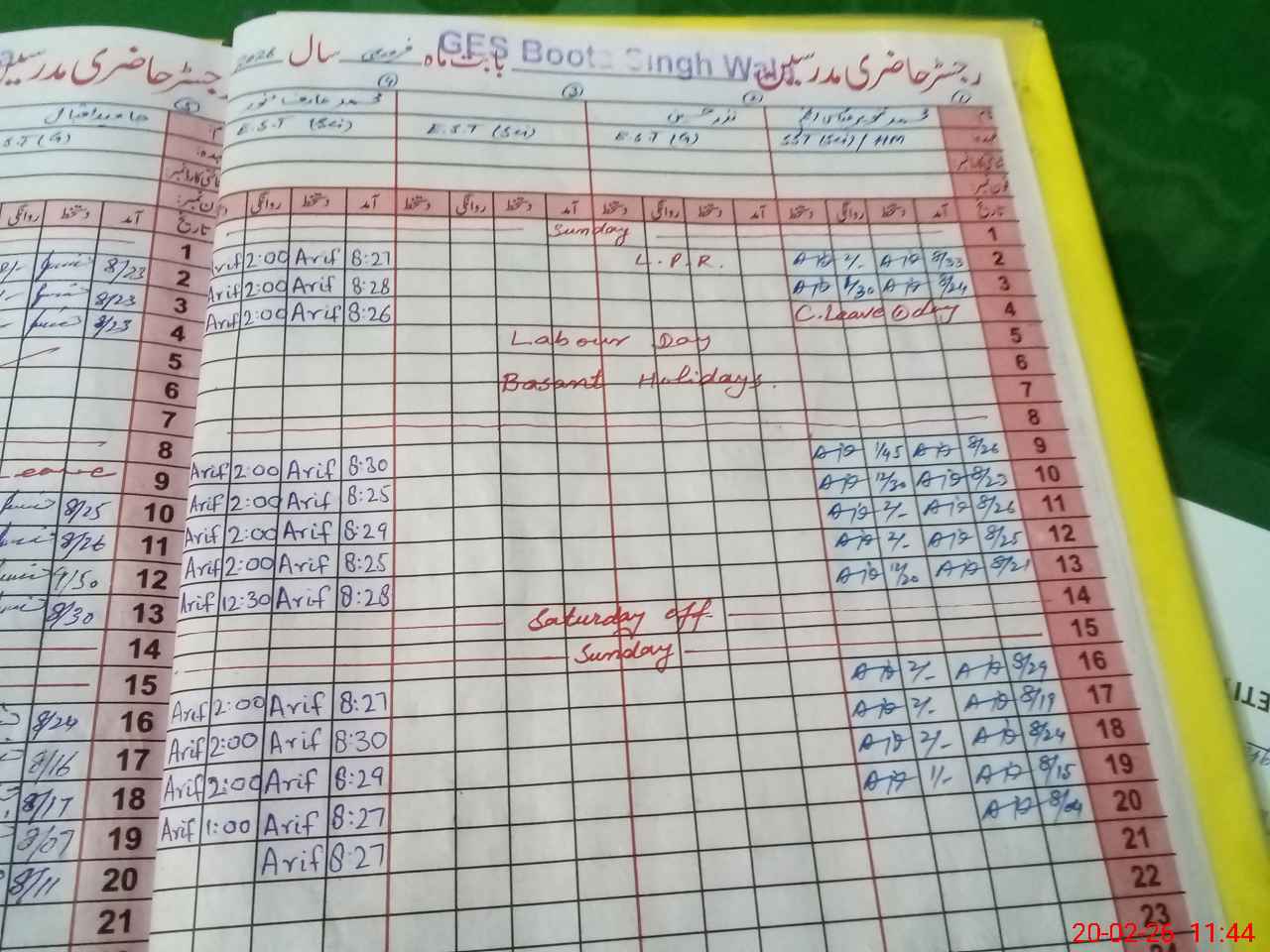 | CNIC | Full Name | Designation | R/C | Absence During Last Calender Month |
