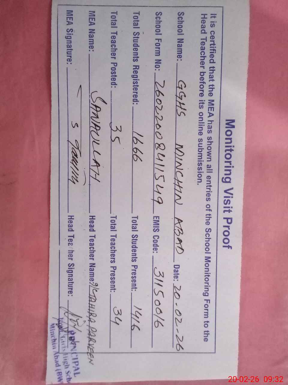 | EMIS Code: 31150016 | Name of School: GGHS MINCHIN ABAD | |||