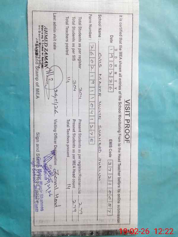 | EMIS Code: 37210057 | Name of School: GHS MAJOR MUNEER SHAHEED JHELUM CANTT | |||