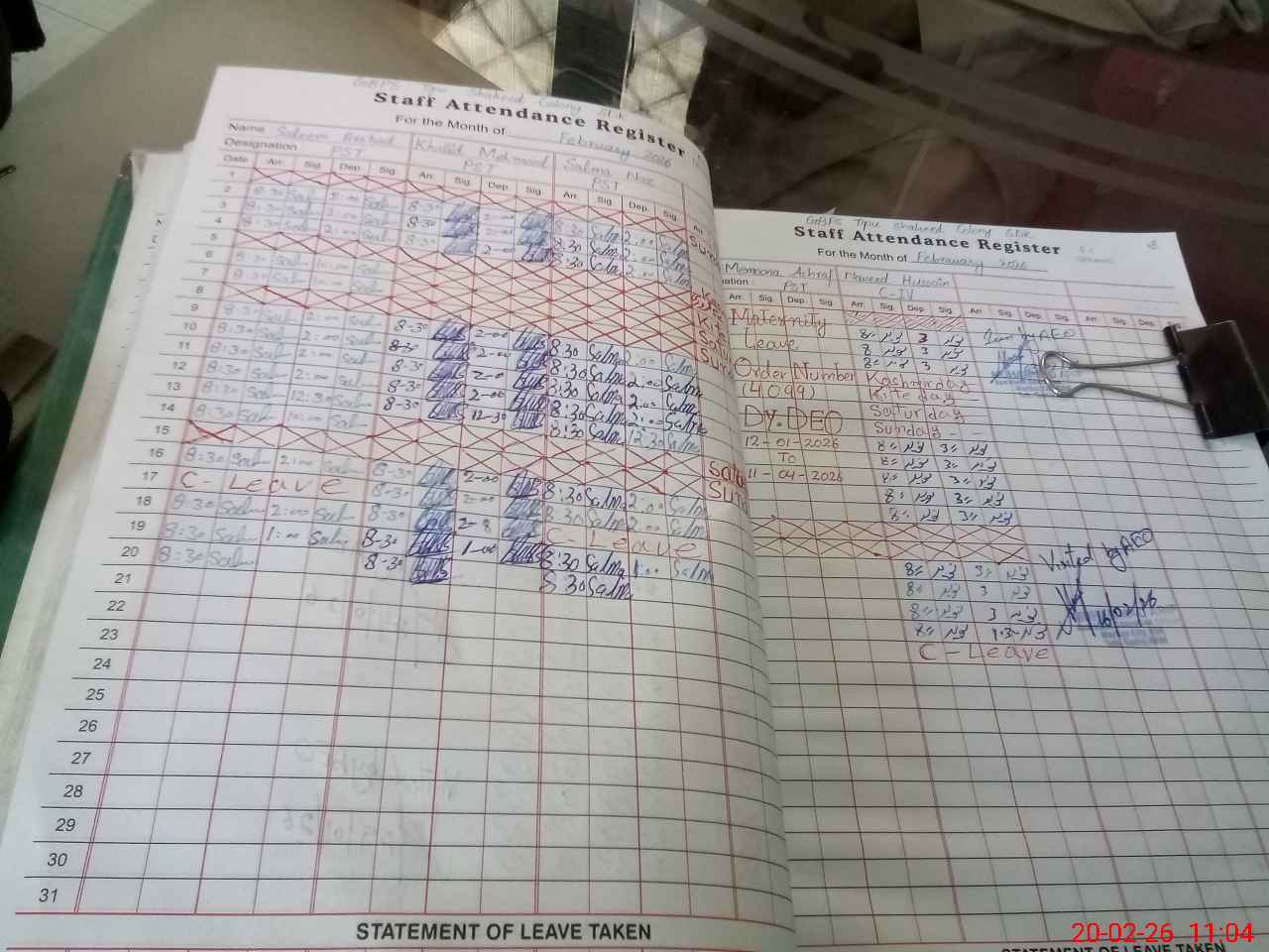 | Leave | Duty | Absent | Maternity | Medical | Ex- Pak |