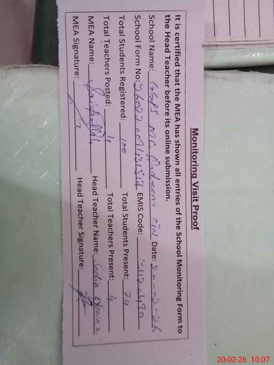 | EMIS Code: 31120490 | Name of School: GGPS MC QADEEM CHISHTIAN | |||