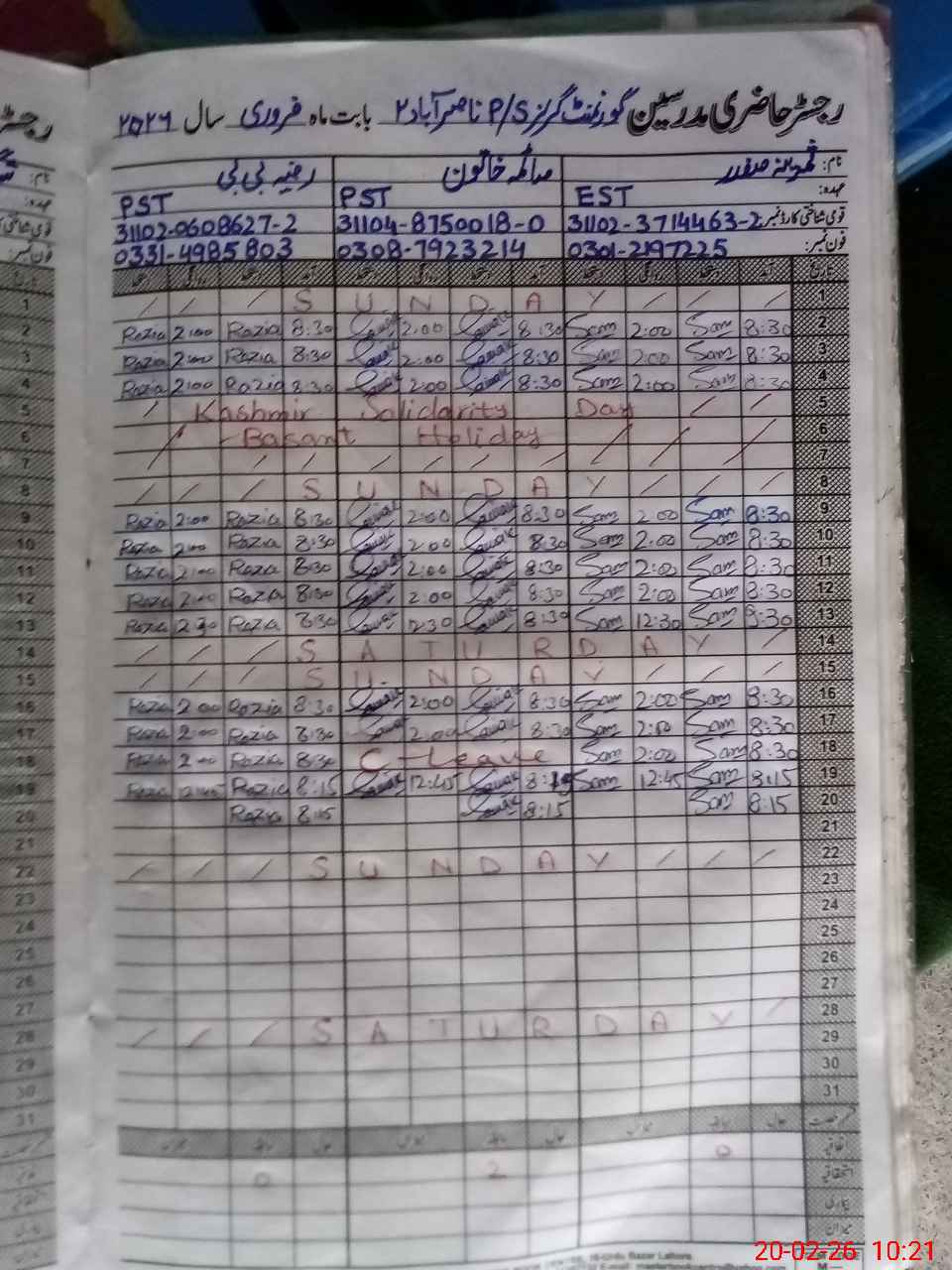 | Name: SA**** SA**** Designation: (School Headmaster's/Headmistress's) EST G Phone/Cell Number: 03**** |