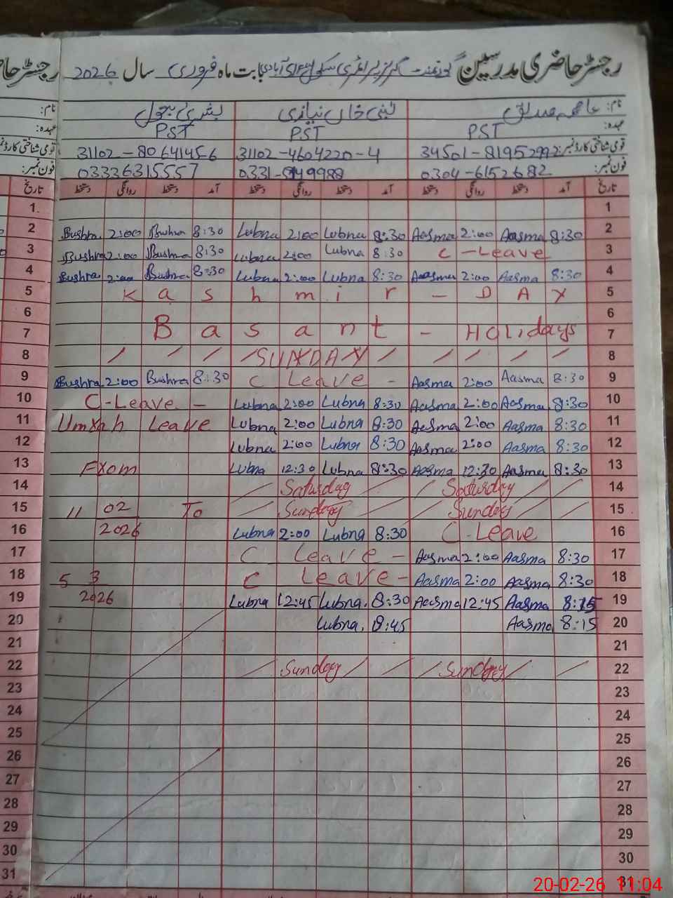 | Name: As**** Si**** Designation: (School Headmaster's/Headmistress's) PST Phone/Cell Number: 03**** |