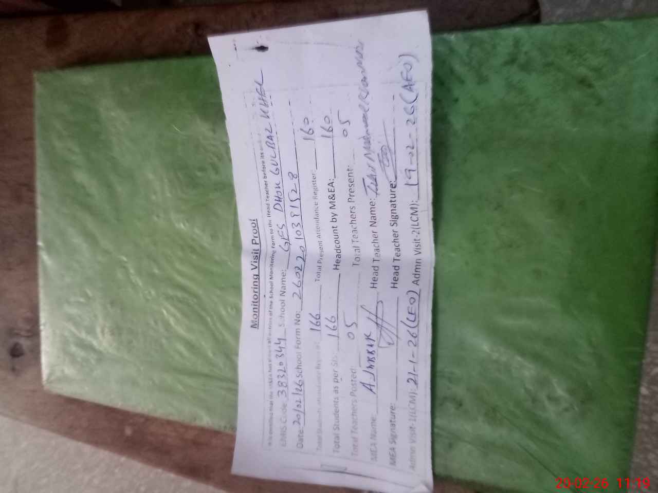 | Attendance Register | Head Teacher | MEA with School | Visit Proof |