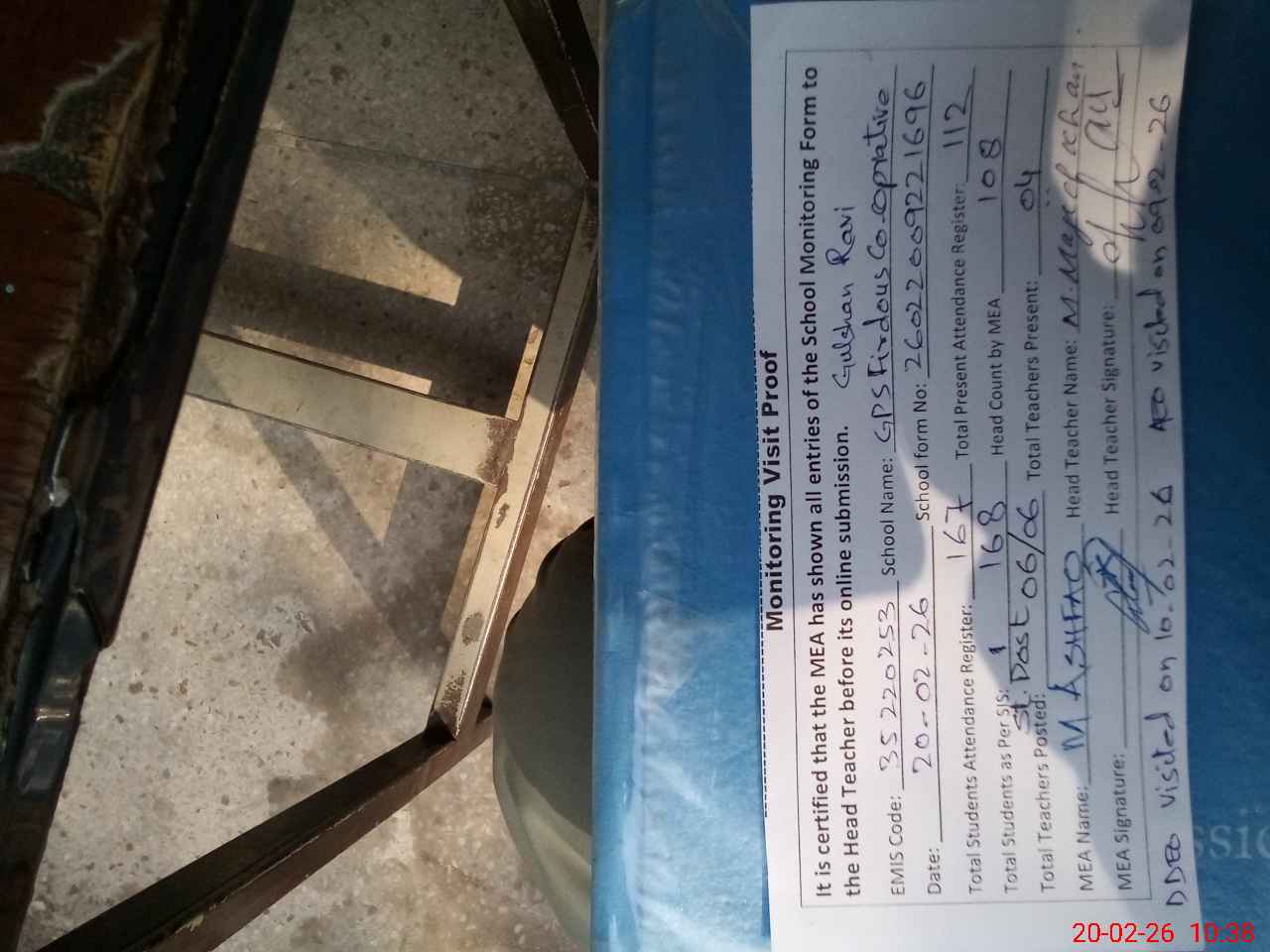| EMIS Code: 35220253 | Name of School: GPS FIRDOUS CO-OPRETIVE GULSHAN-E-RAVI | |||