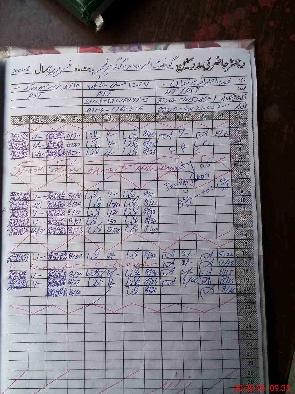 | Remarks (Use Separate Page if Required): DDEO Shahid visited on 10-02-2026 AEO Arshad Saeed Khan last visited on 09-02-2026 Paint condition is not up to standard for whole the school building 35220253 | |||||