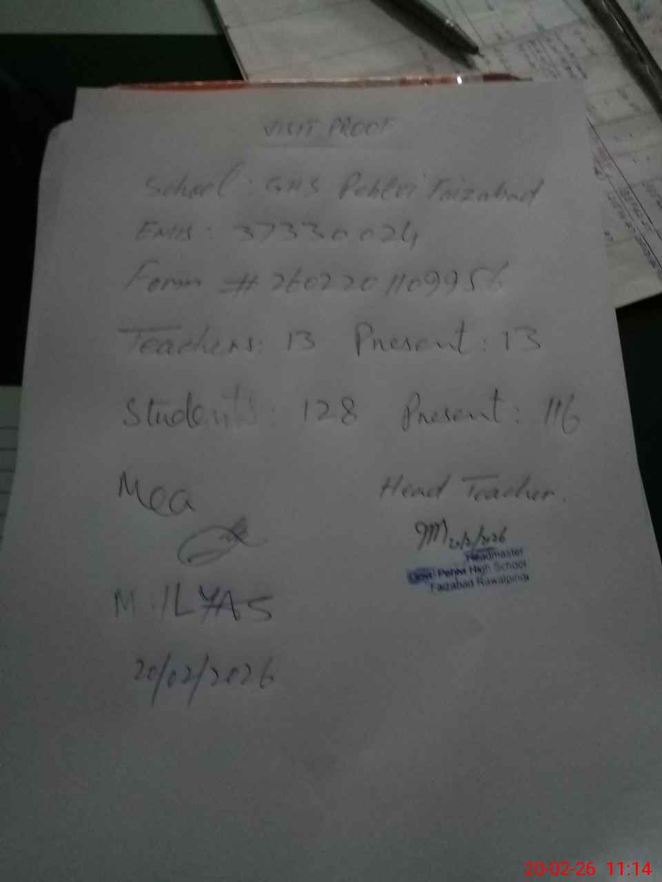 | EMIS Code: 37330024 | Name of School: GHS PEHLVI FAIZABAD RAWALPINDI | |||
