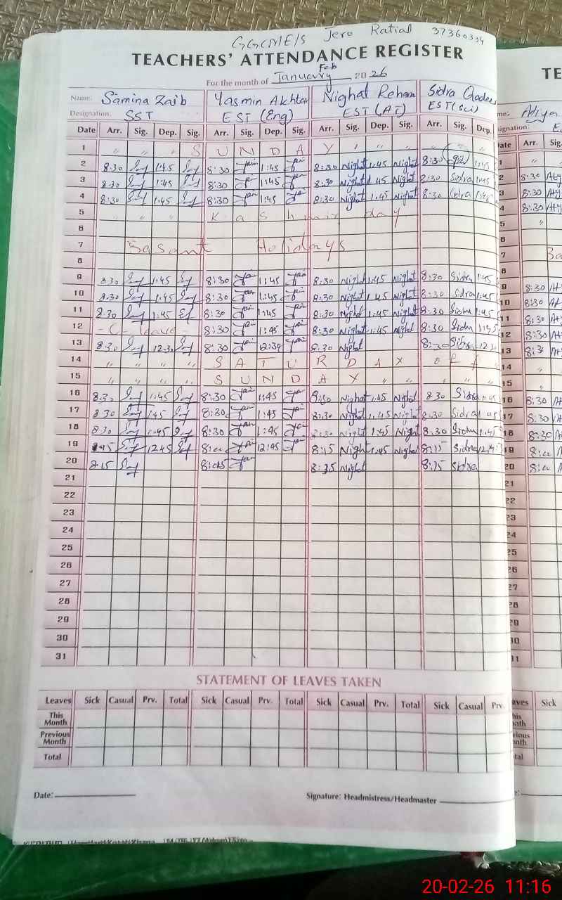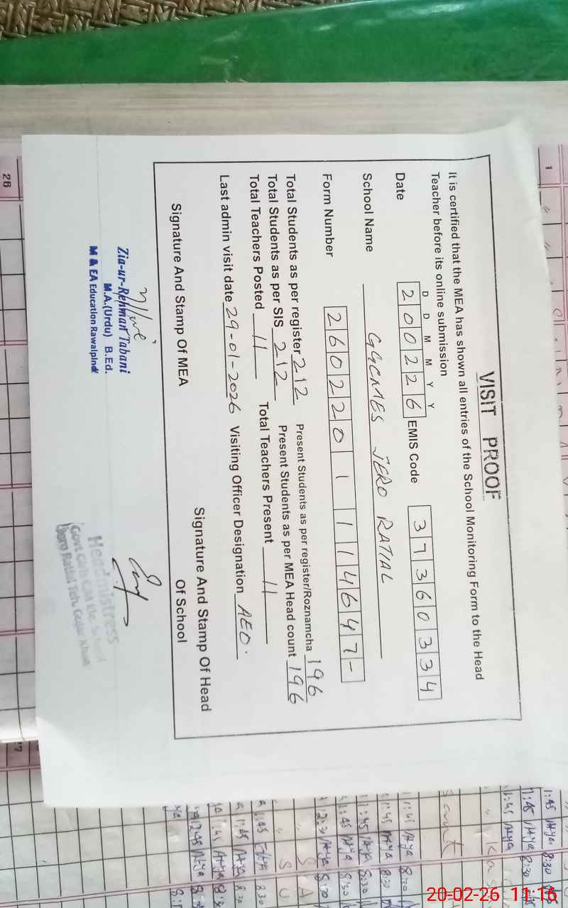 | Attendance Register | Head Teacher | MEA with School | Visit Proof |