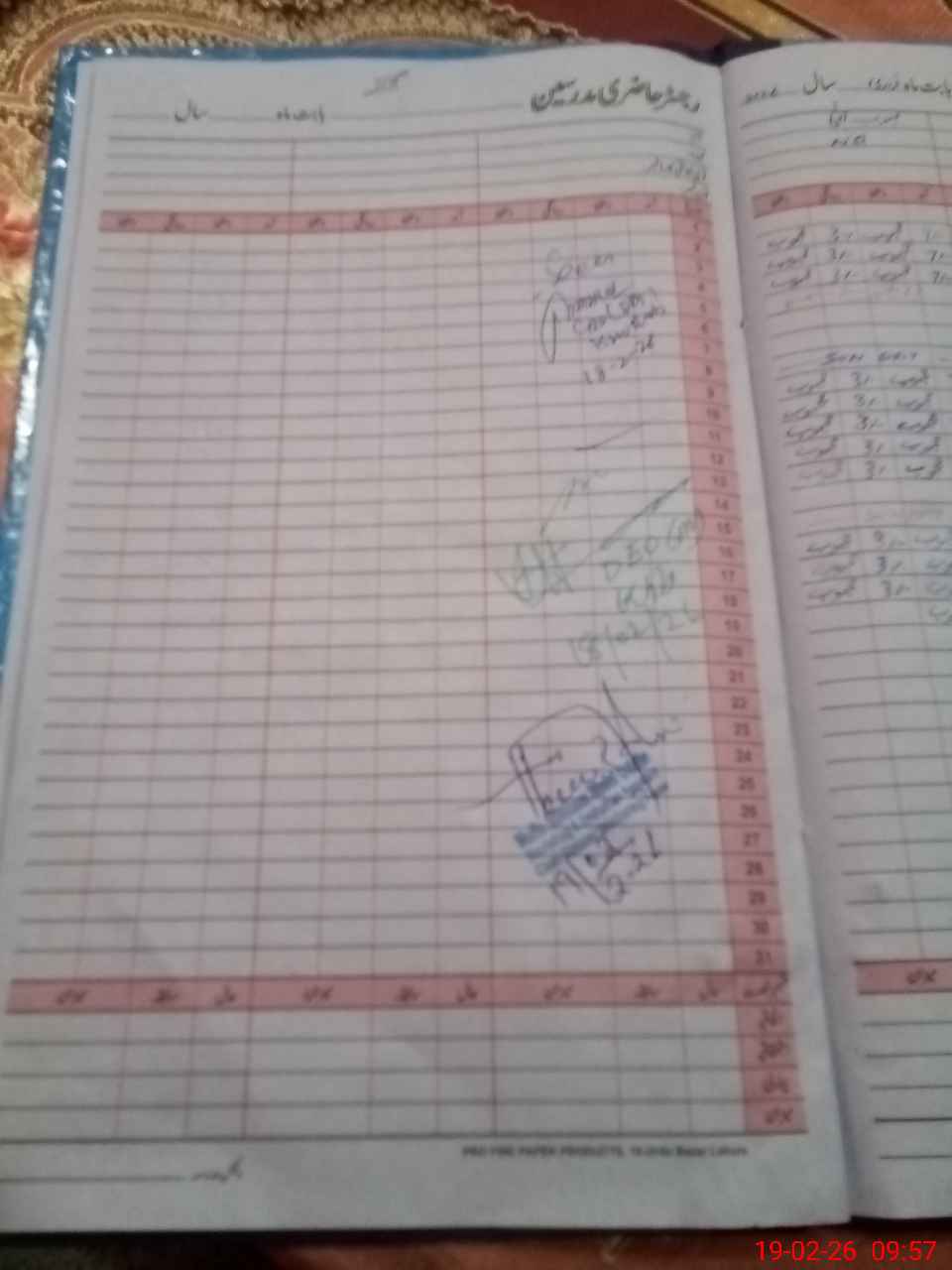 | CNIC | Full Name | Designation | R/C | Absence During Last Calender Month |