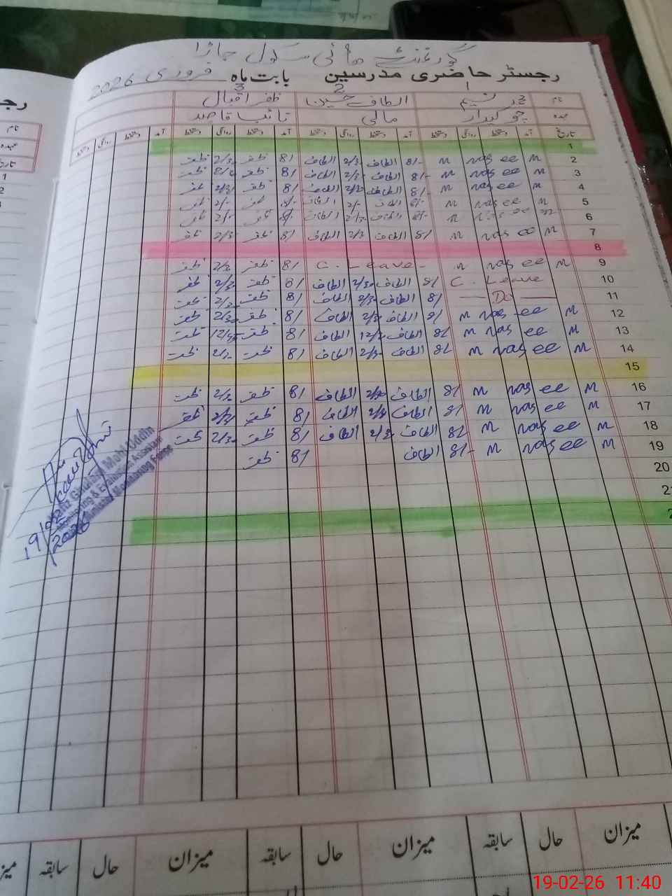 | CNIC | Full Name | Designation | R/C | Absence During Last Calender Month |