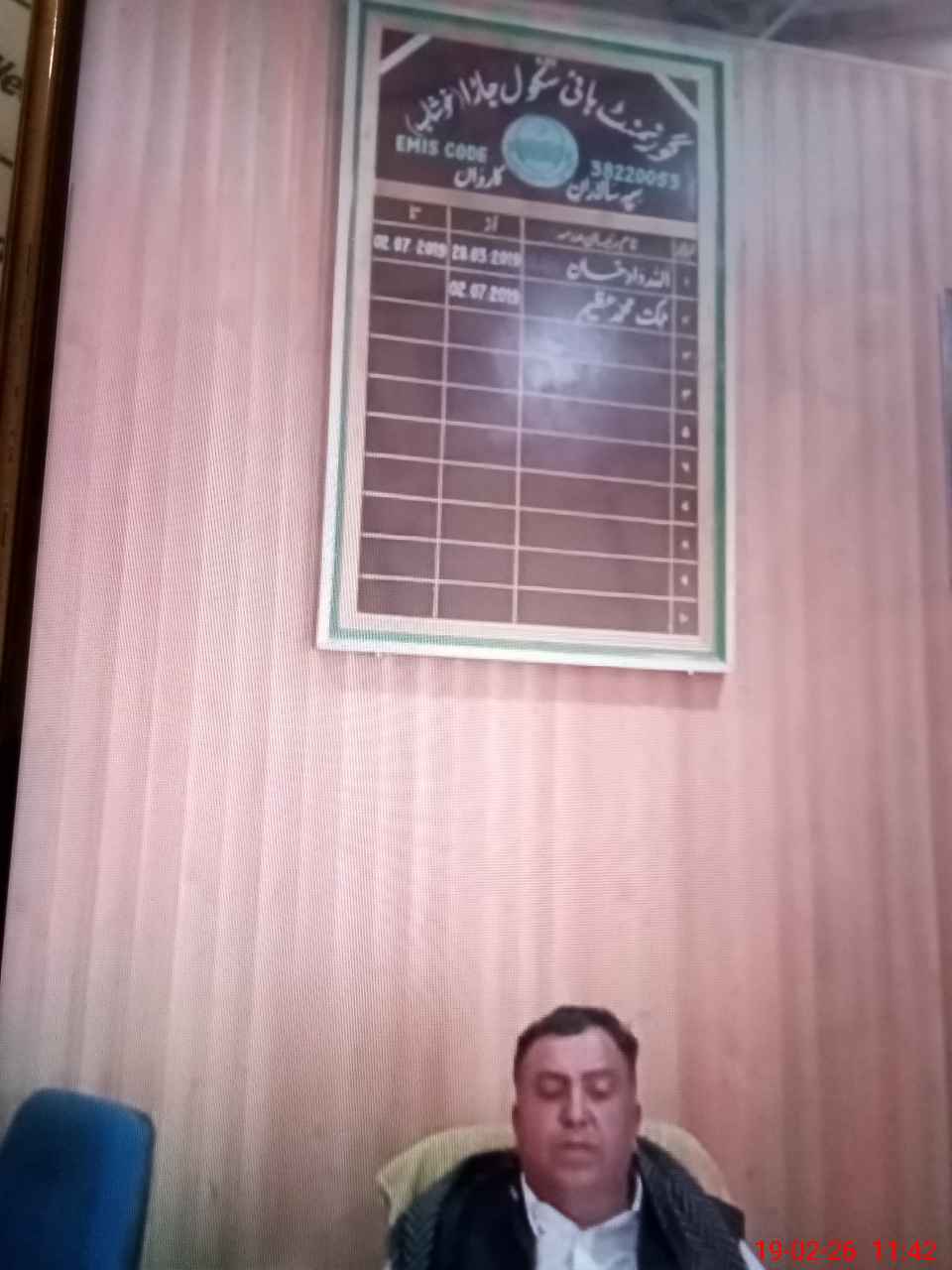 | Name: Mu**** Az**** Designation: (School Headmaster's/Headmistress's) Headmaster Phone/Cell Number: 03**** |