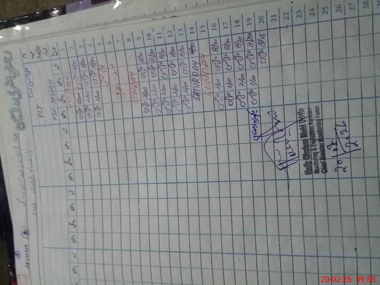 | Monitoring Date: 20-02-2026 | Start Time: 20-02-2026 09:21 AM | End Time: 20-02-2026 09:59 AM | Name of MEA: HA**** GH**** MO**** UDDI**** | |