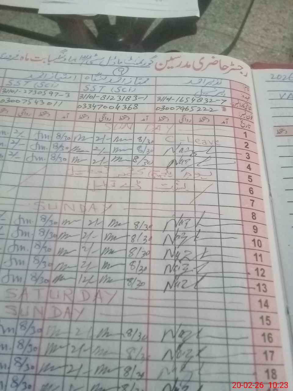 | 31**** | Am**** Al**** Kh**** | EST General Arts | Regular | 0 | 0 | 0 | 0 | 0 | 0 | 0 | 0 | 0 | Casual |