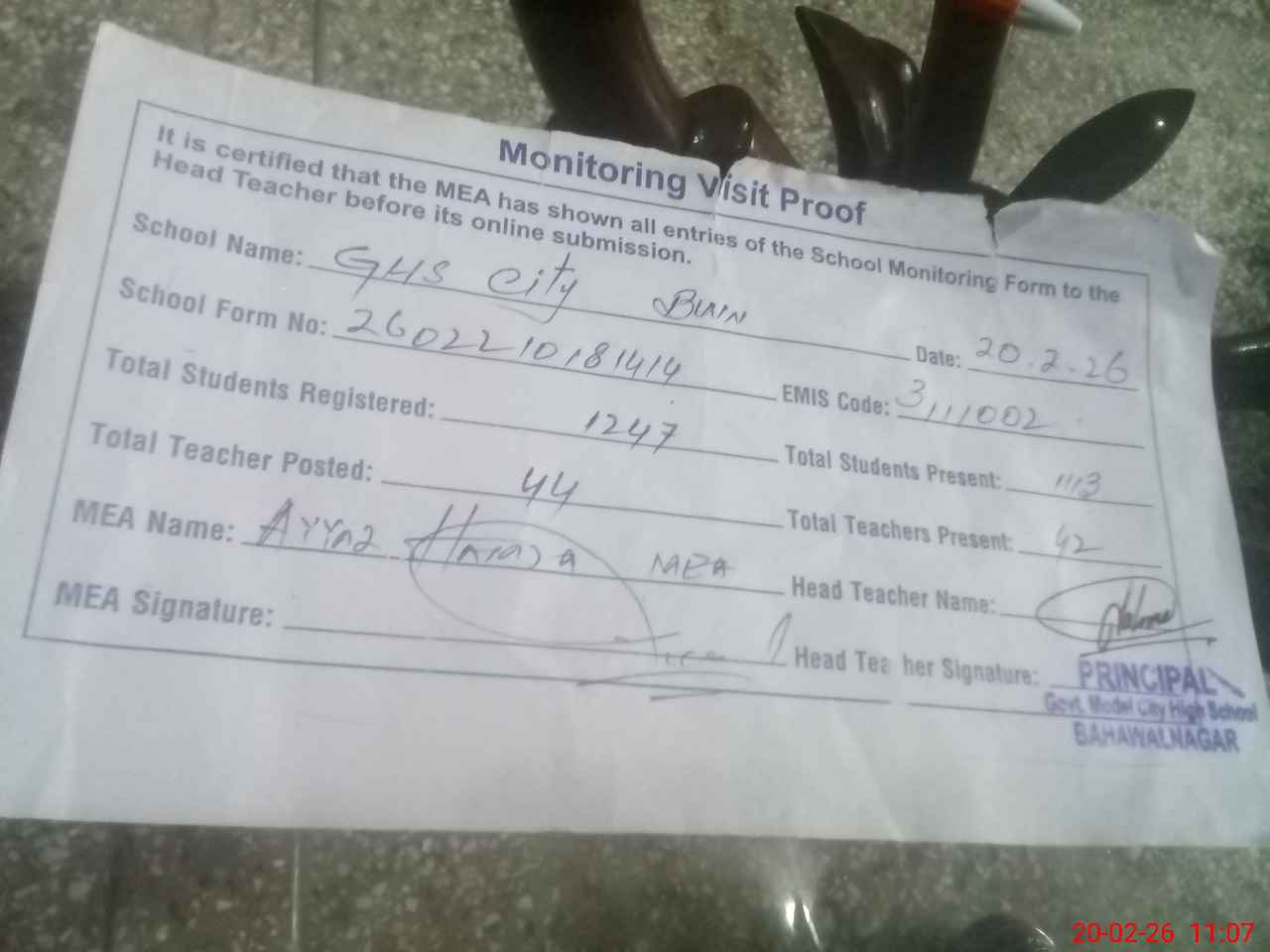 | EMIS Code: 31110021 | Name of School: GHS CITY BAHAWALNAGAR | |||