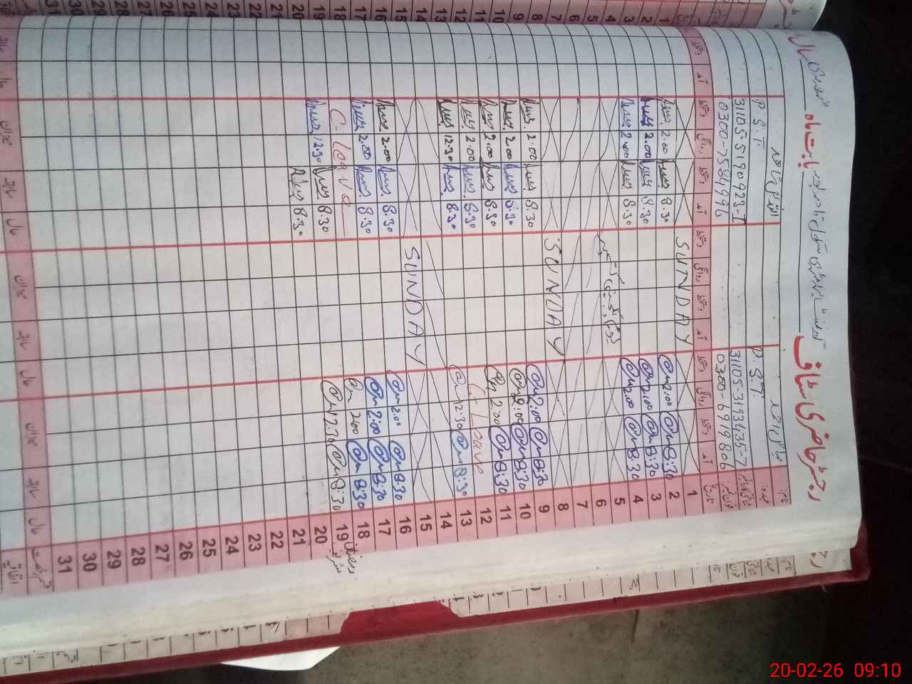 | CNIC | Full Name | Designation | R/C | Absence During Last Calender Month |