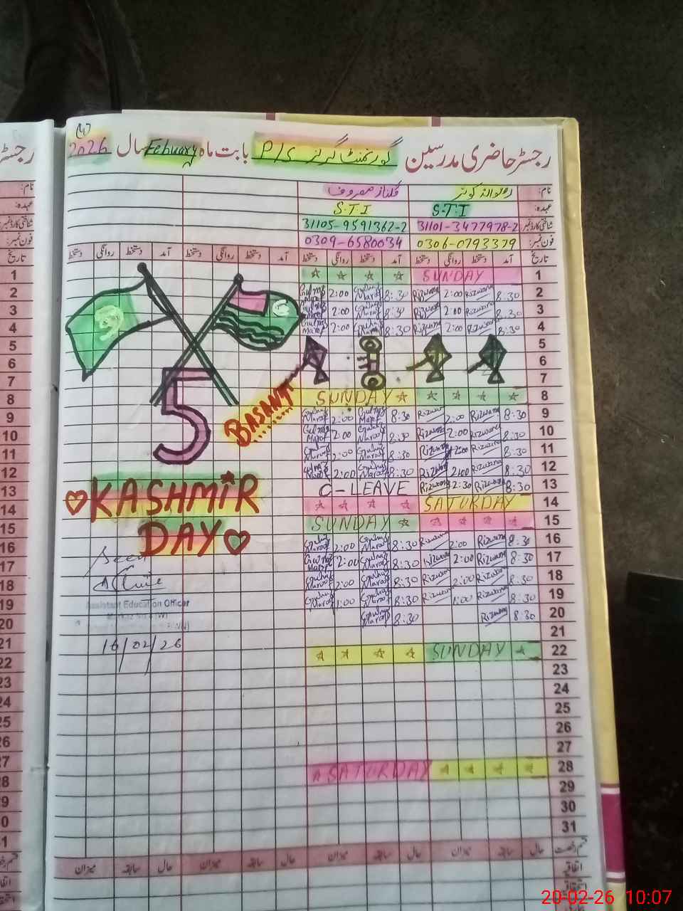 | Name: Mu**** Ak**** Designation: (School Headmaster's/Headmistress's) PST Phone/Cell Number: 03**** |