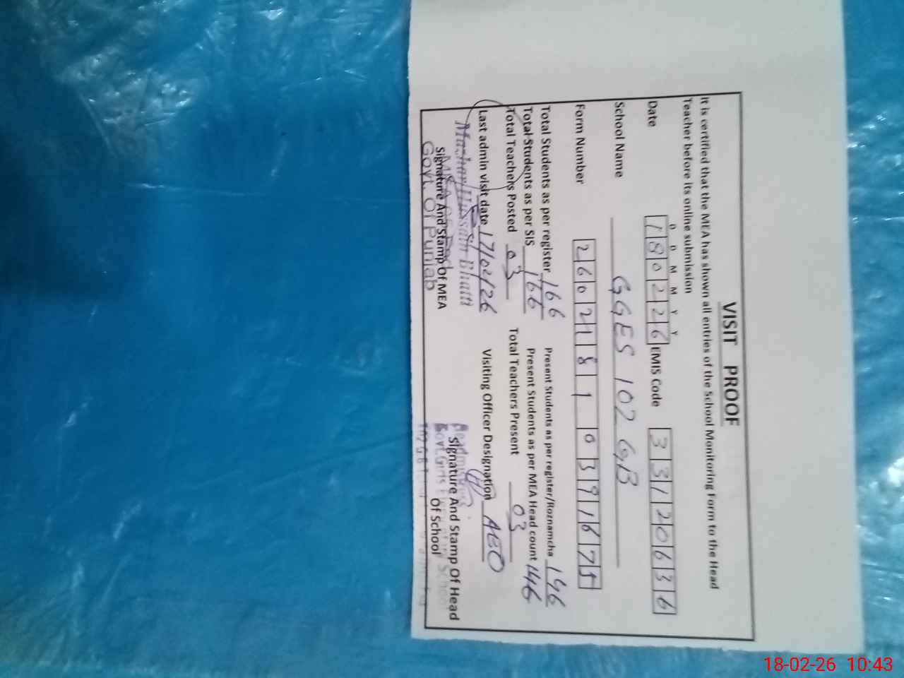| EMIS Code: 33120636 | Name of School: GGES 102 GB | |||