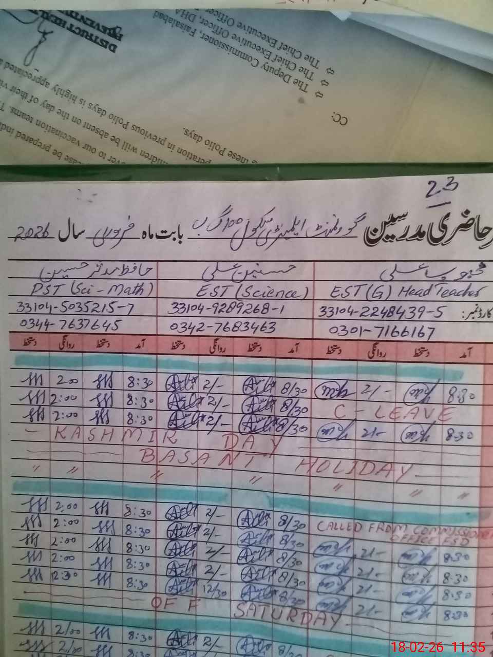 | District: FAISALABAD | Tehsil: JARANWALA | Markaz: ALI PUR BANGLA - MALE | Level: Middle | |