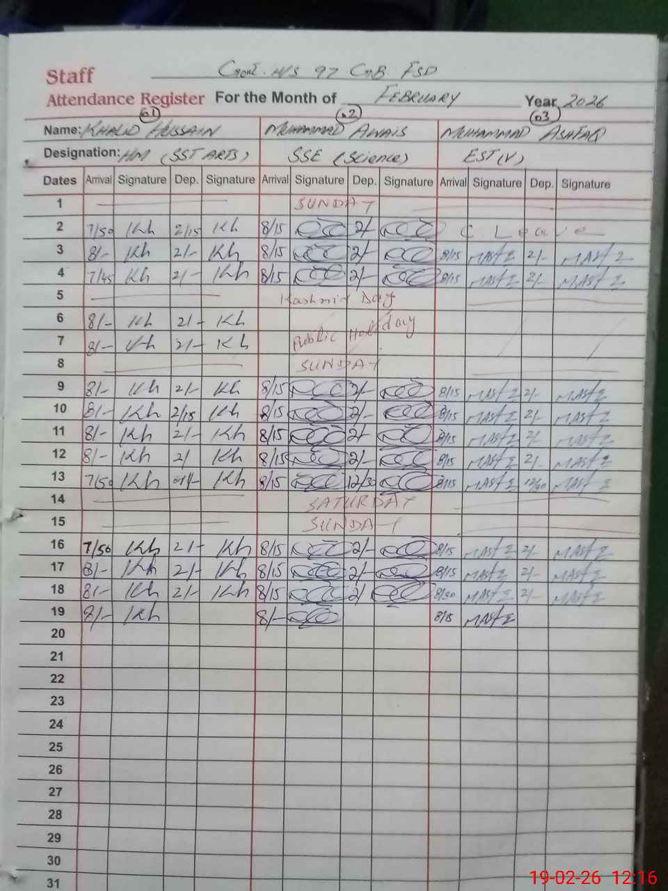 | Name: Kh**** Hu**** Designation: (School Headmaster's/Headmistress's) SST (Art) Phone/Cell Number: 03**** |