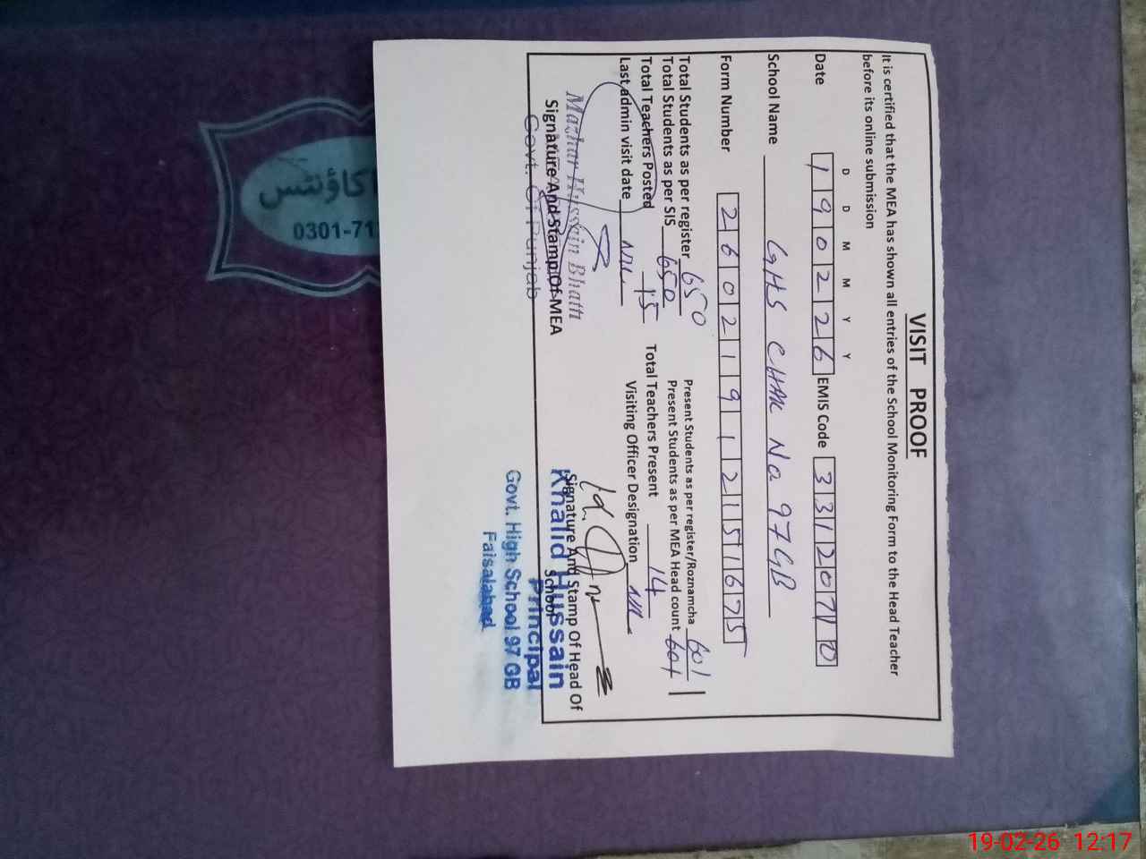 | EMIS Code: 33120710 | Name of School: GHS CHAK NO. 97 GB FSD | |||