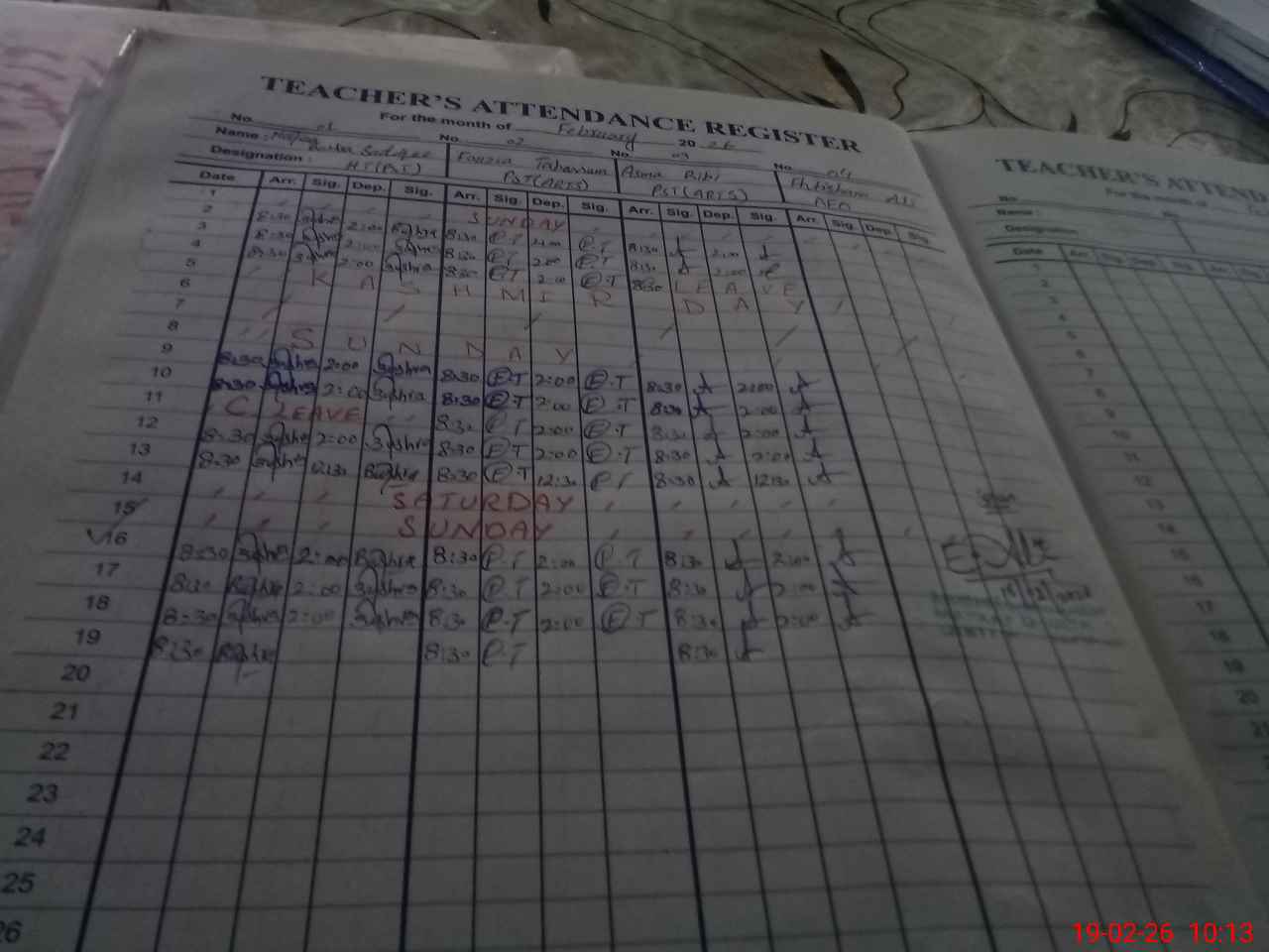 | CNIC | Full Name | Designation | R/C | Absence During Last Calender Month |