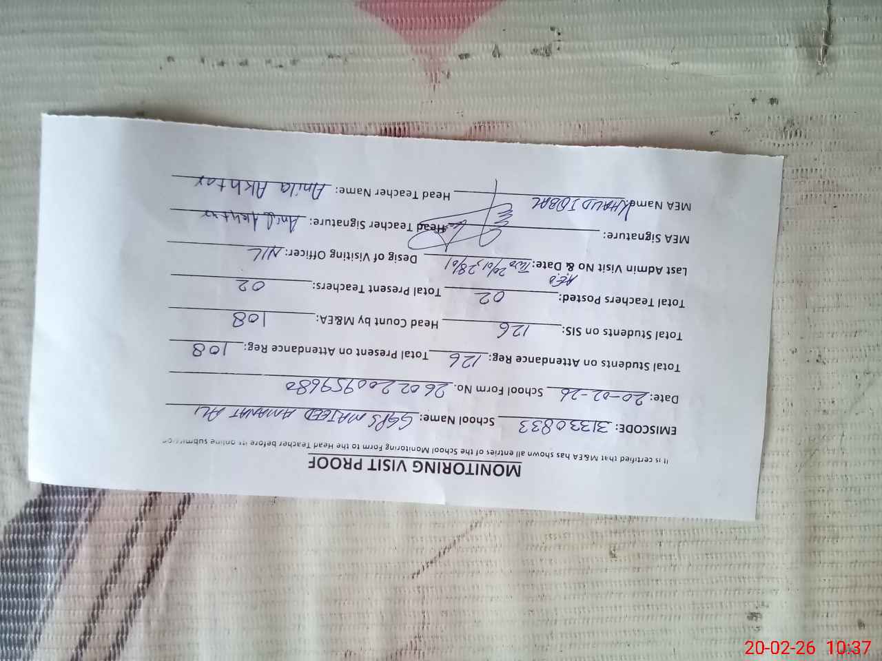 | EMIS Code: 31330833 | Name of School: GGPS MAJEED AMANAT ALI | |||