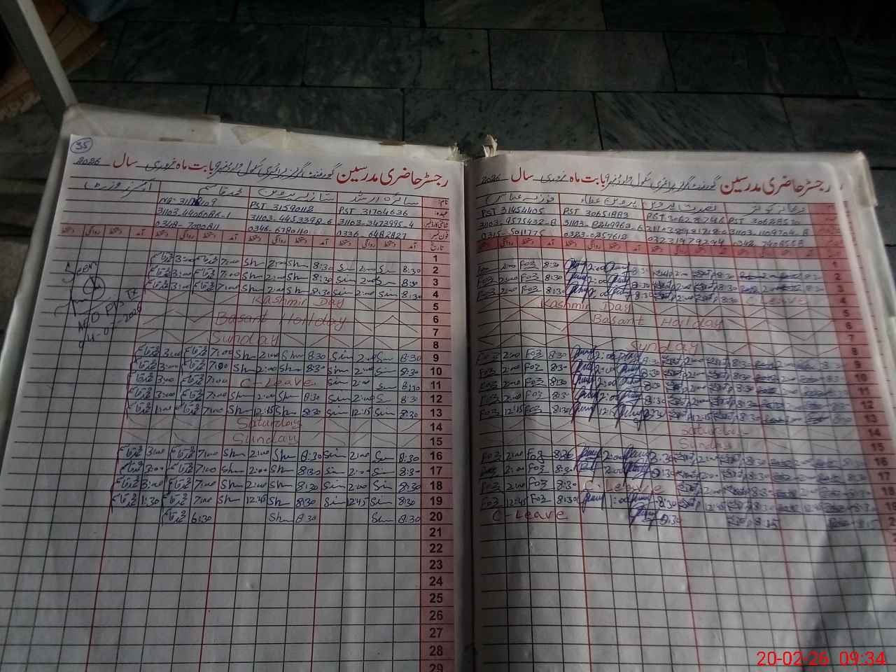 | CNIC | Full Name | Designation | R/C | Absence During Last Calender Month |