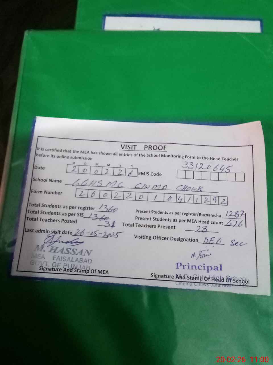 | EMIS Code: 33120645 | Name of School: GGHS MC CINEM CHOWK | |||
